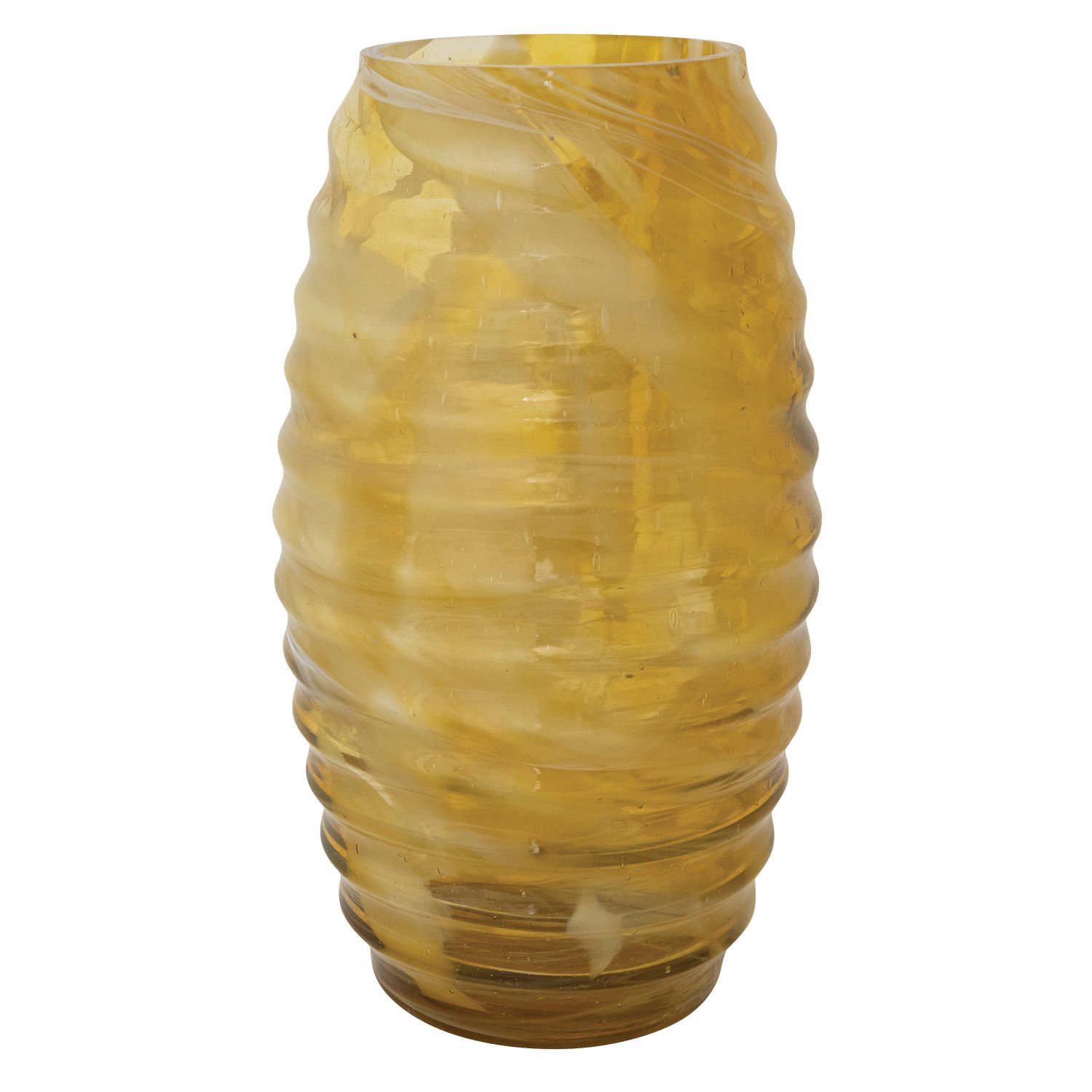 Catalog Name: 8-1/2" Round x 15"H Glass Ribbed Vase, Marbled Amber Color