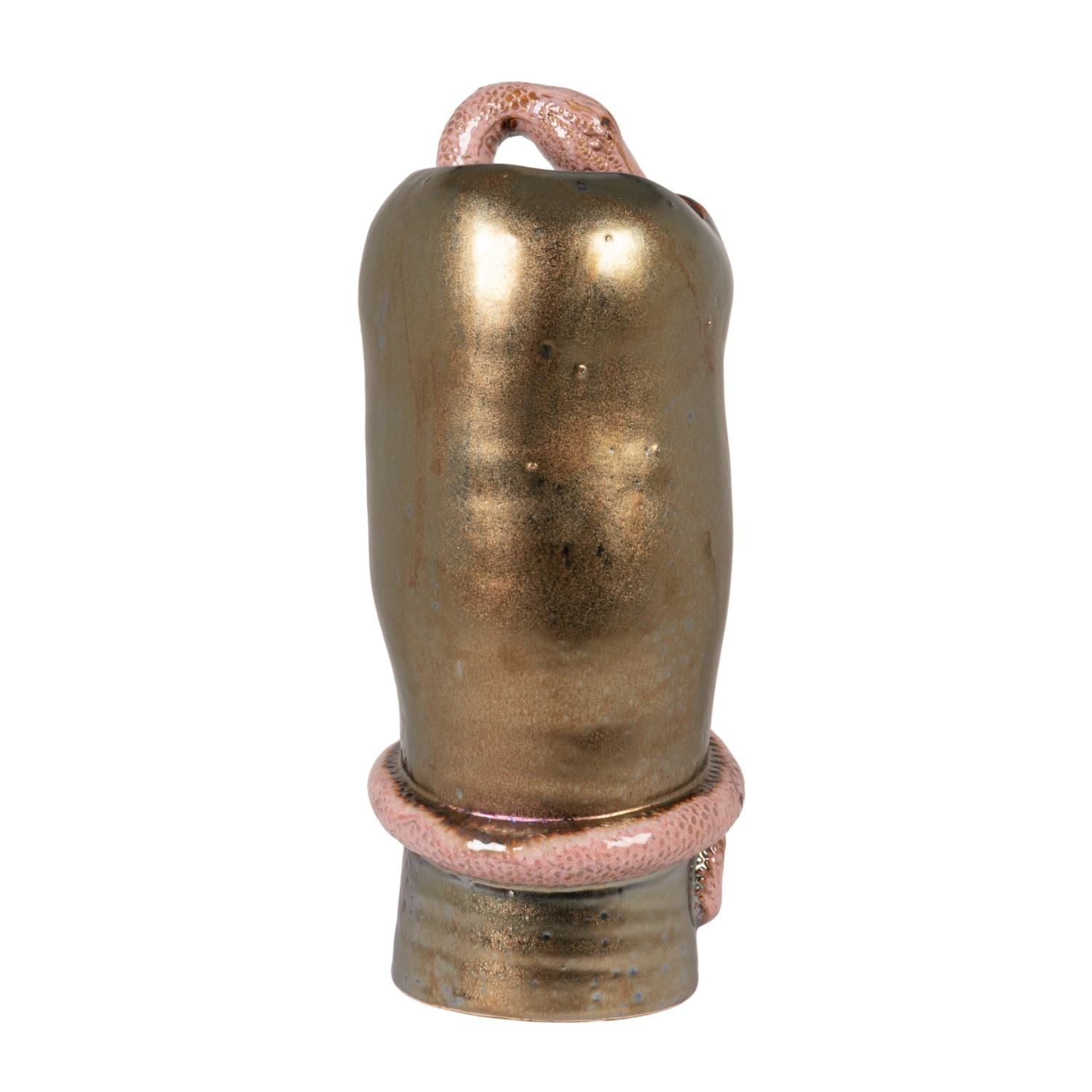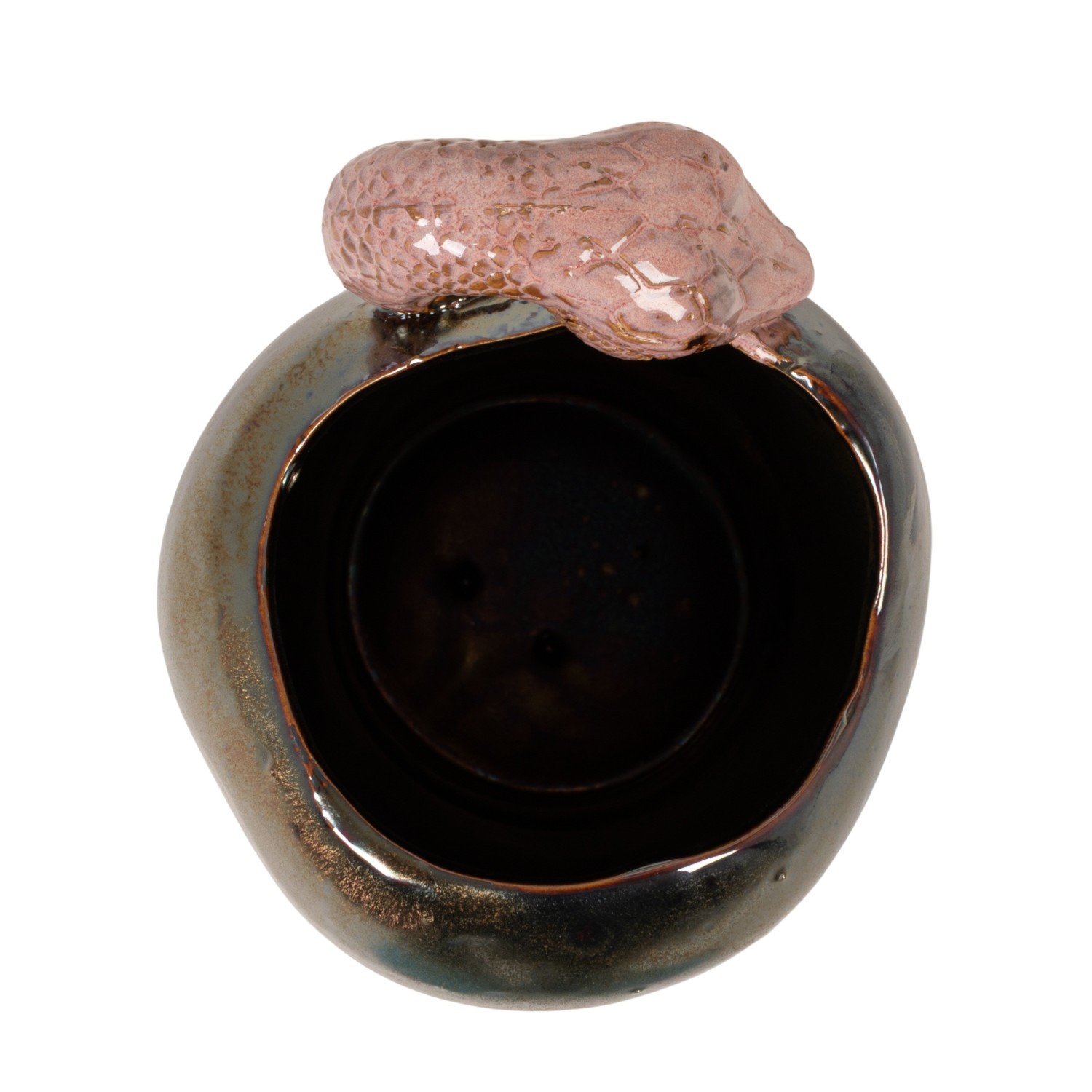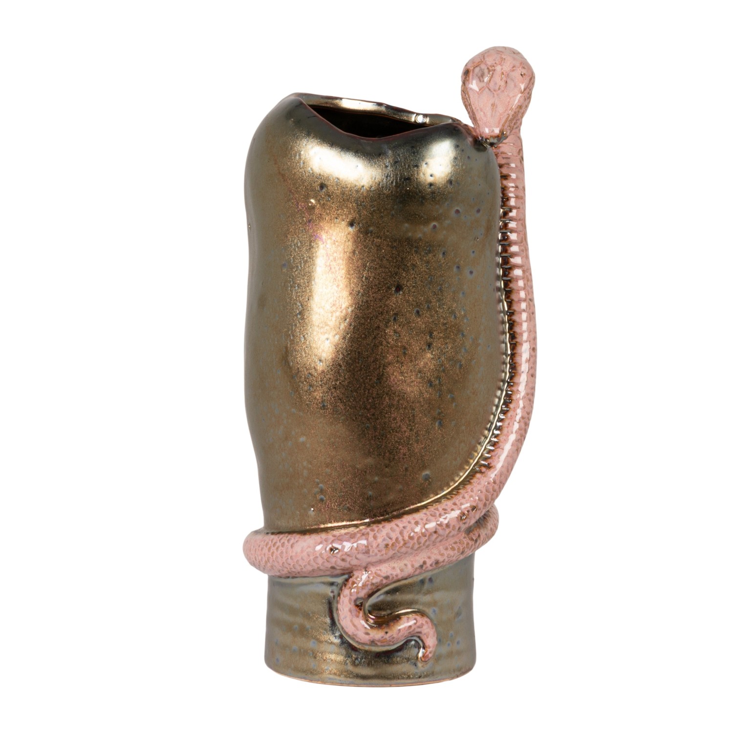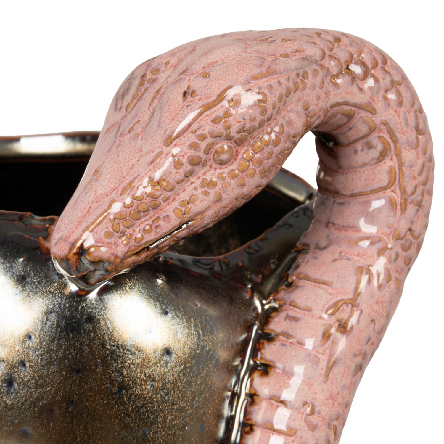 Stoneware Vase with 3D Snake, Metallic Finish & Pink (Each One Will Vary)