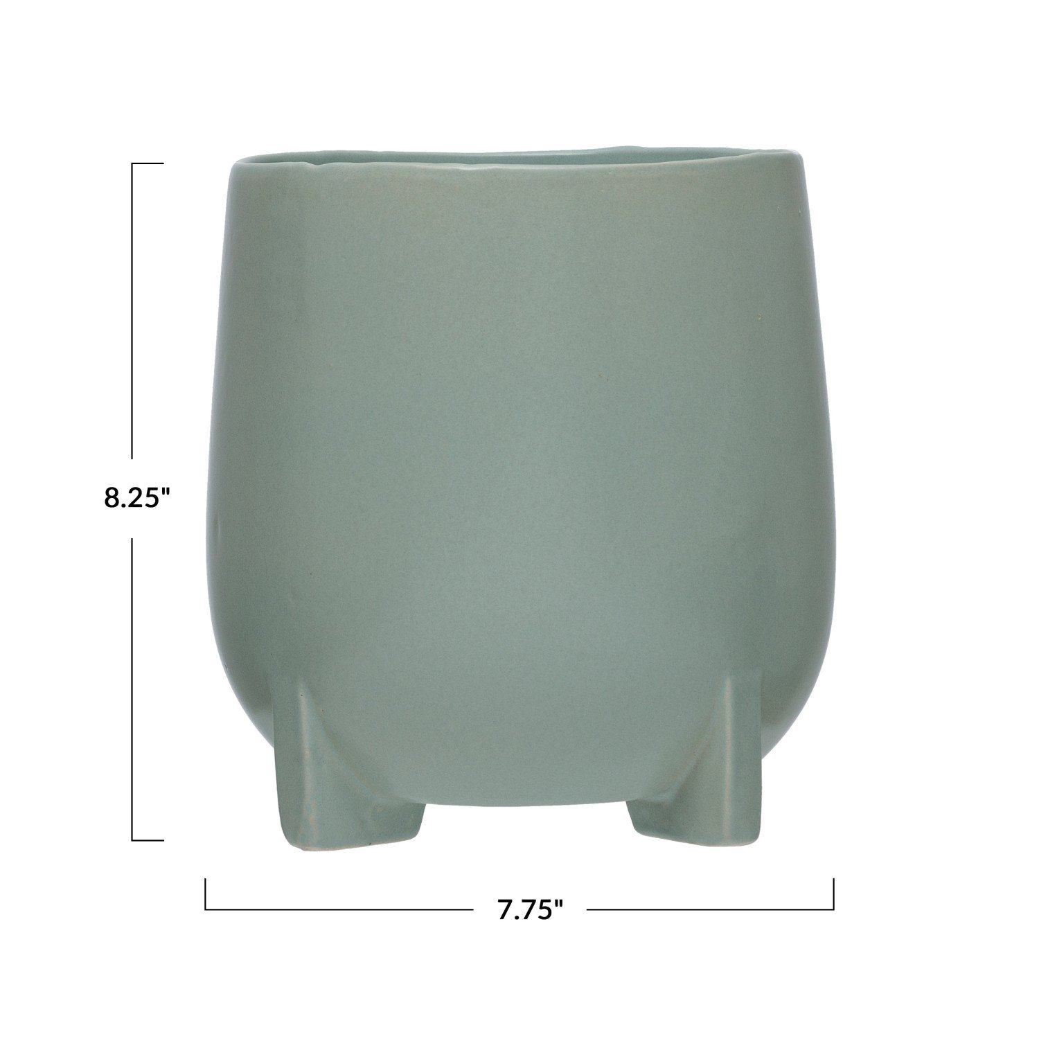 This minimalist Scandinavian planter features sleek, matte stoneware with a carved footed base. Footed stoneware planter in mint blue finish. Add a dash of contemporary charm to any living space with this stylishly versatile planter. Made from 100% stoneware.