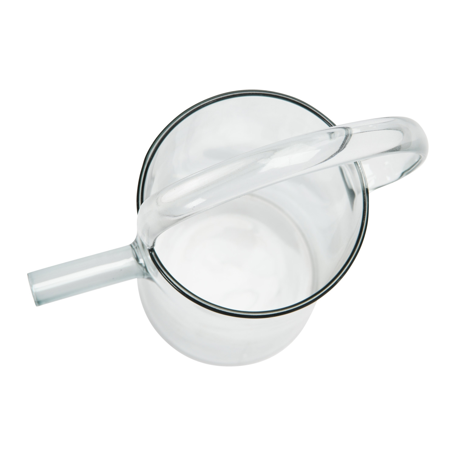 This mid-century modern pitcher showcases a stunningly sleek glass silhouette in a subtle transparent hue. Glass pitcher in blue. Add a hint of modern art to any living space or tablescape with this contemporary watering can. Made from 100% glass.