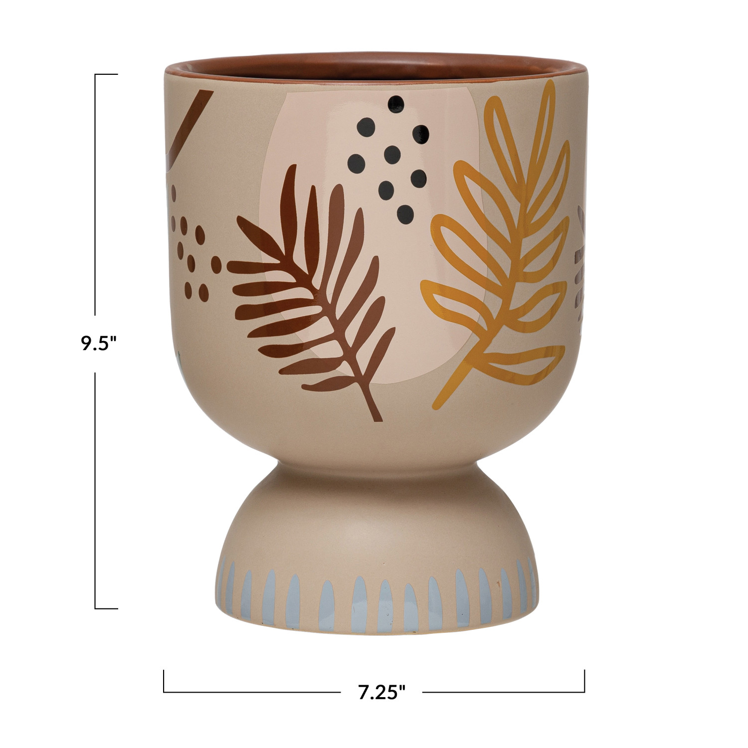Catalog Name: 7-1/4" Round x 9-1/2'H Stoneware Footed Planter w/ Abstract Design, Multi Color (Holds 6" Pot)