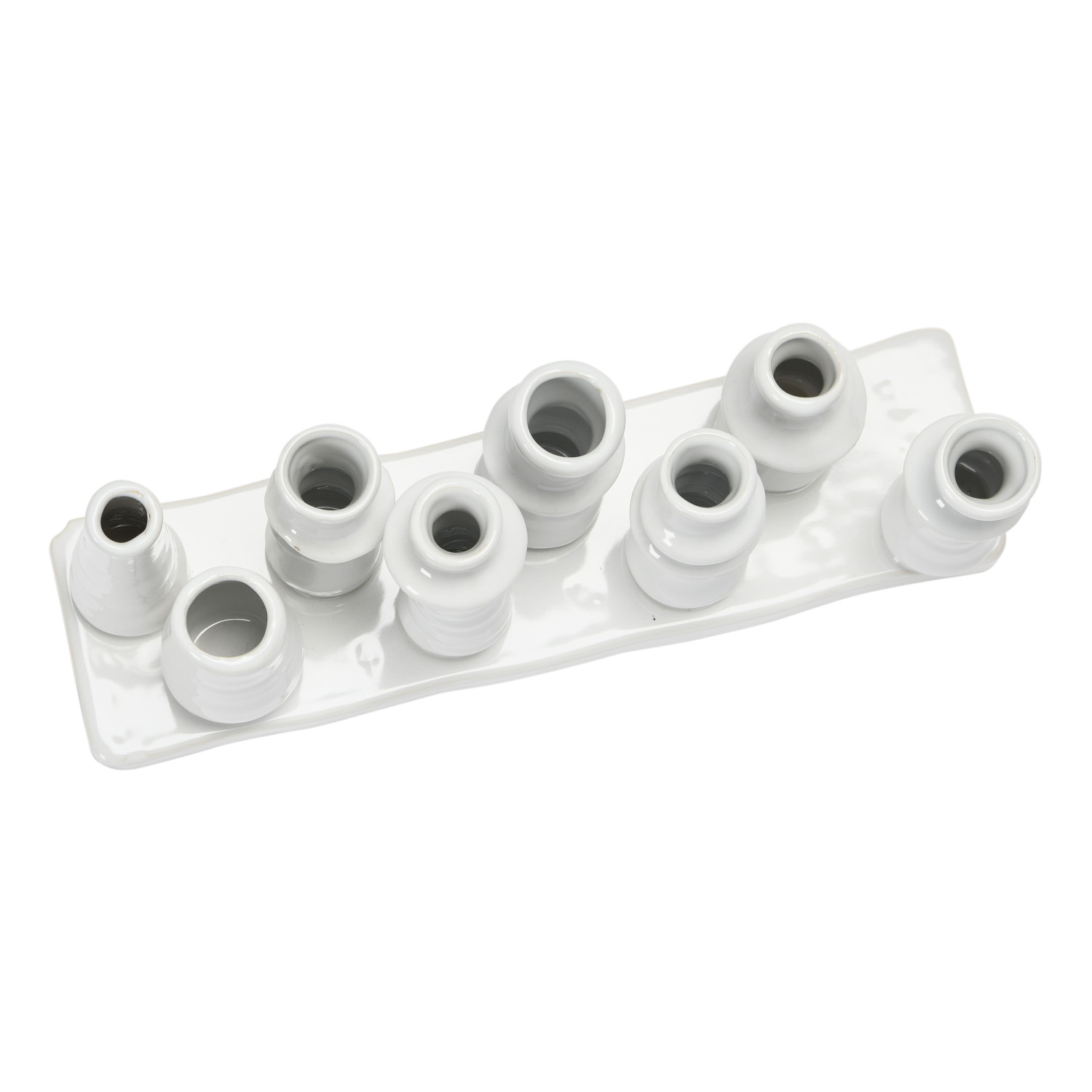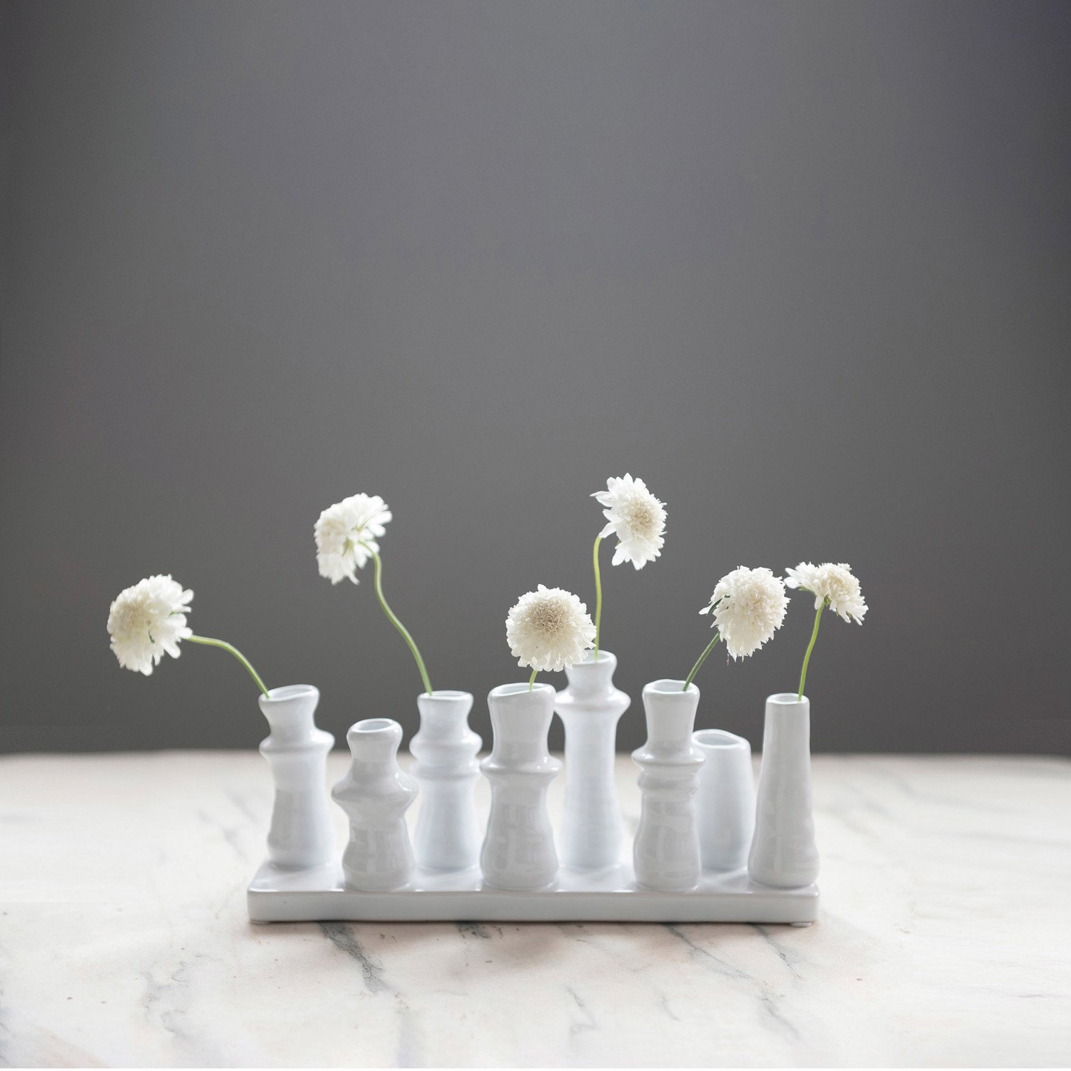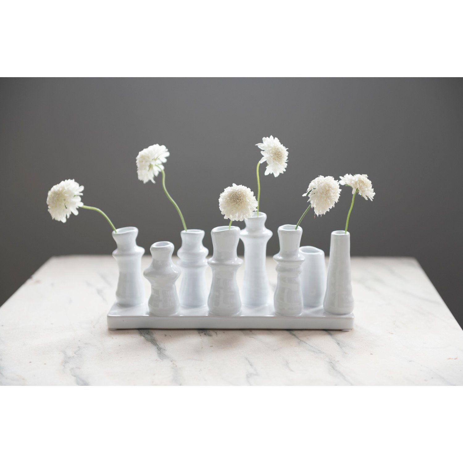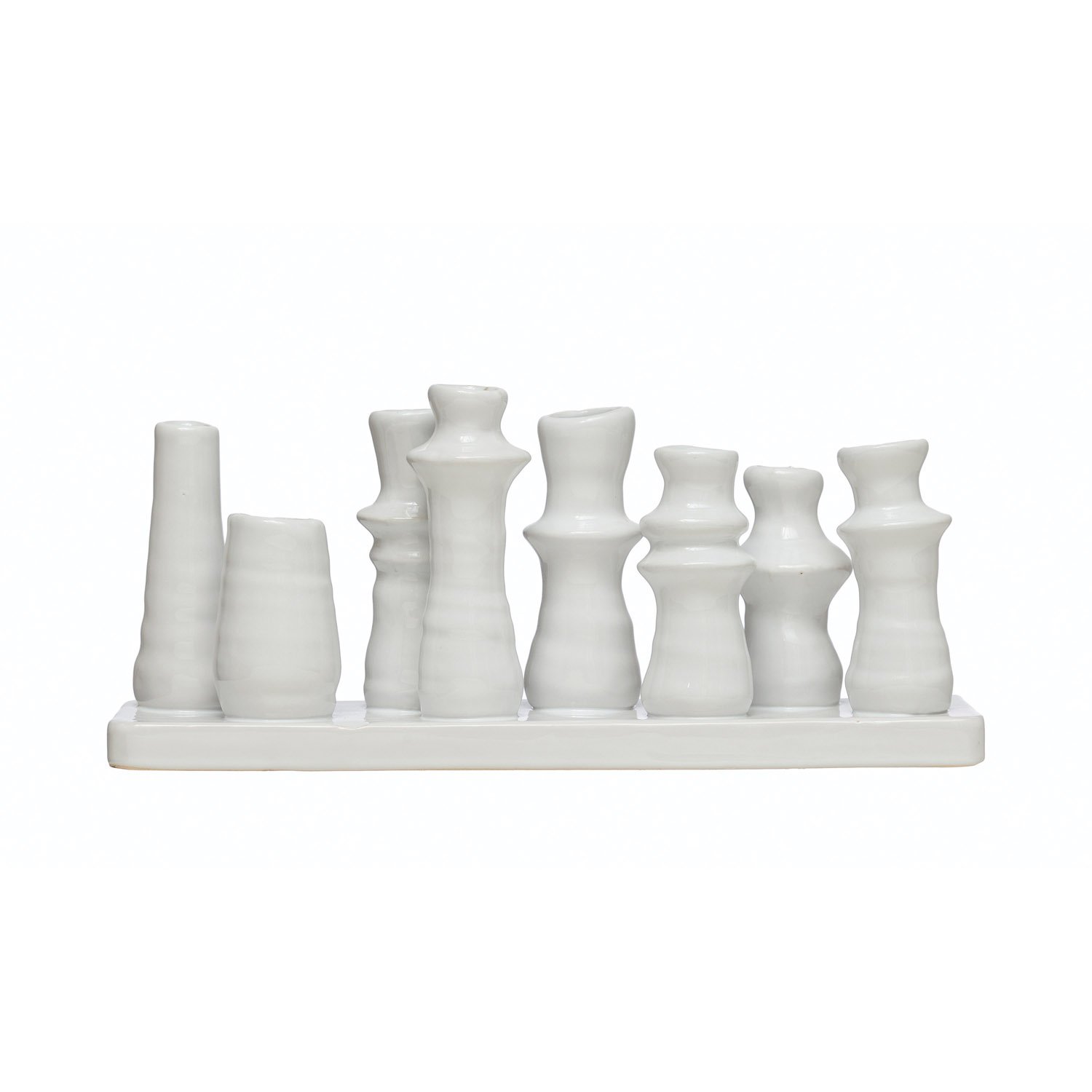 Catalog Name: 10-1/2"L x 2-3/4"W x 4-1/2"H Stoneware Multi Vase w/ 8 Vases, White