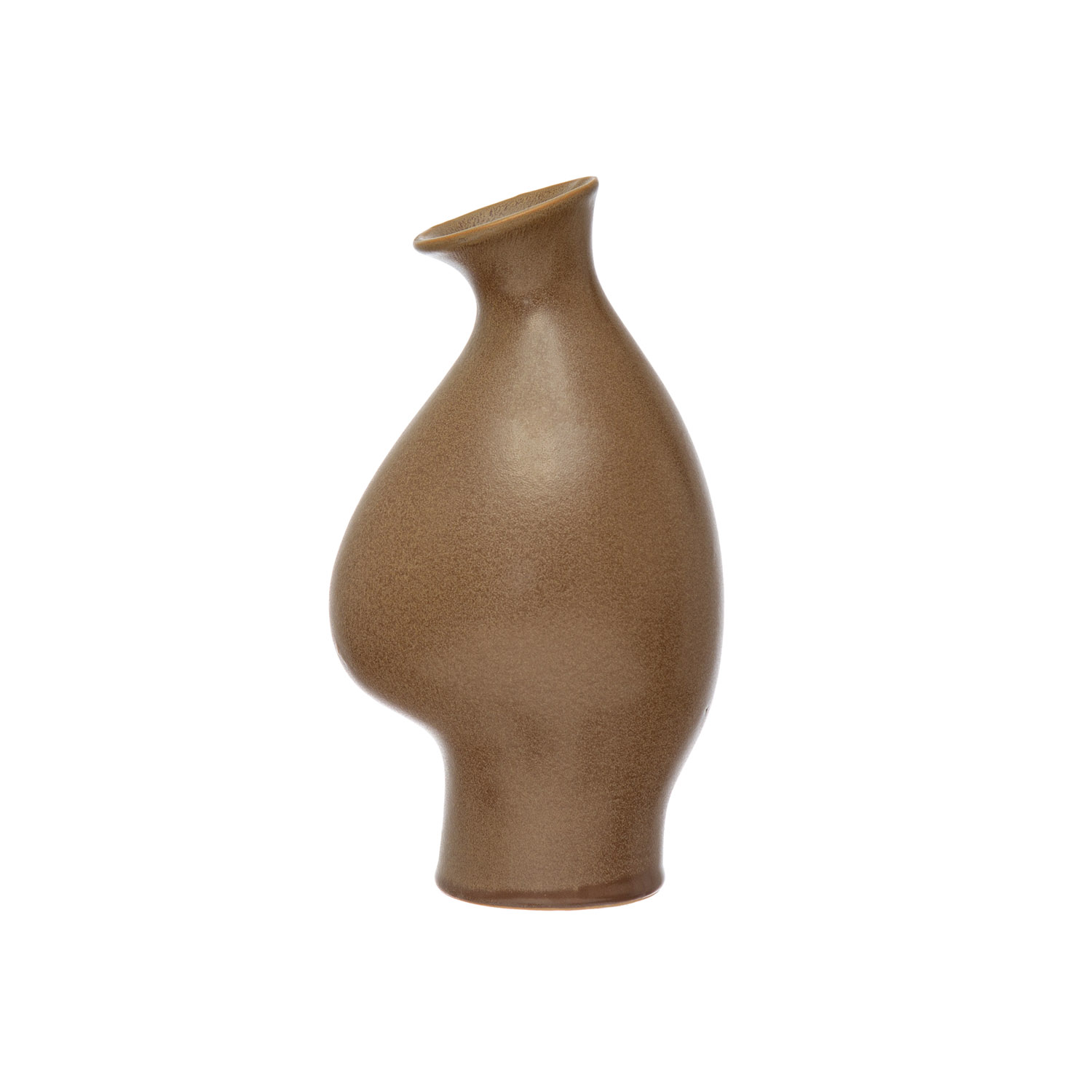 This strikingly modern vase features an organic stoneware silhouette in a naturally variating, speckled reactive glaze. Stoneware vase in a brown speckled reactive glaze. Display this stylishly versatile vase as a sophisticated mantel accent or part of an inviting dining table centerpiece. Made from 100% stoneware.