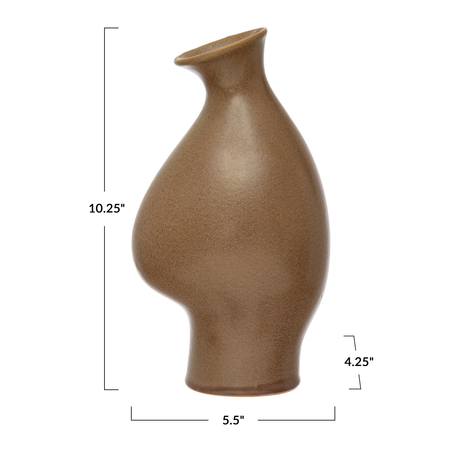 Catalog Name: 5-1/2"L x 4-1/4"W x 10-1/4"H Stoneware Organic Shaped Vase, Reactive Glaze, Brown Speckled (Each One Will Vary)