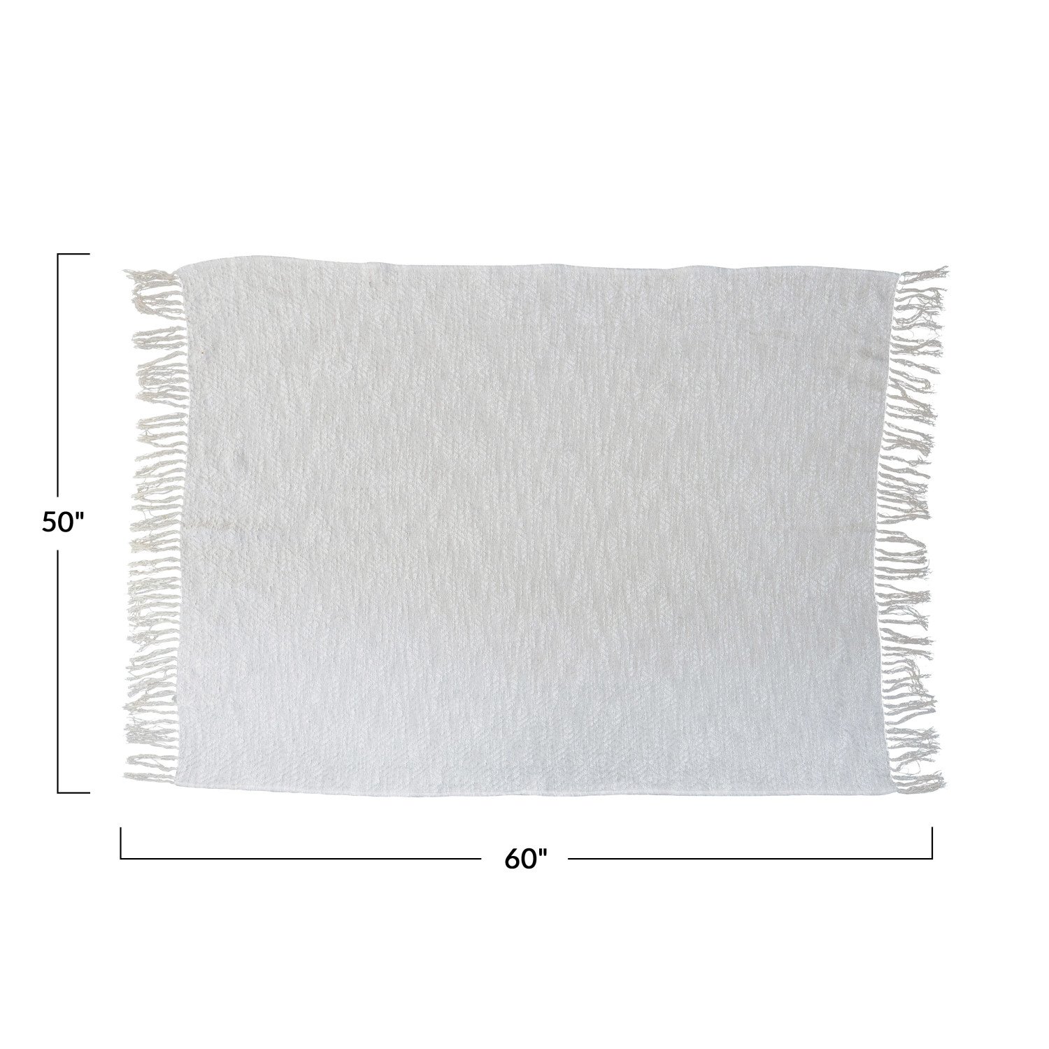 Cotton Throw w/ Silver Metallic Thread & Fringe