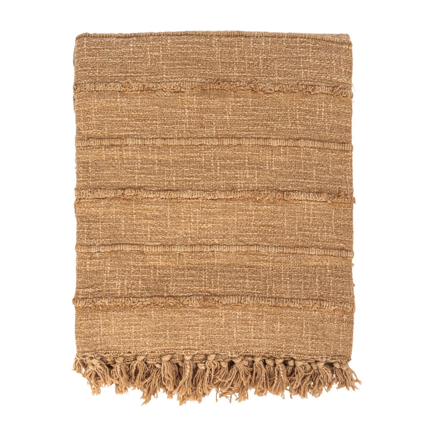 Catalog Name: 60"L x 50"W Stonewashed Woven Cotton Slub Throw w/ Tufted Stripes & Fringe, Beige