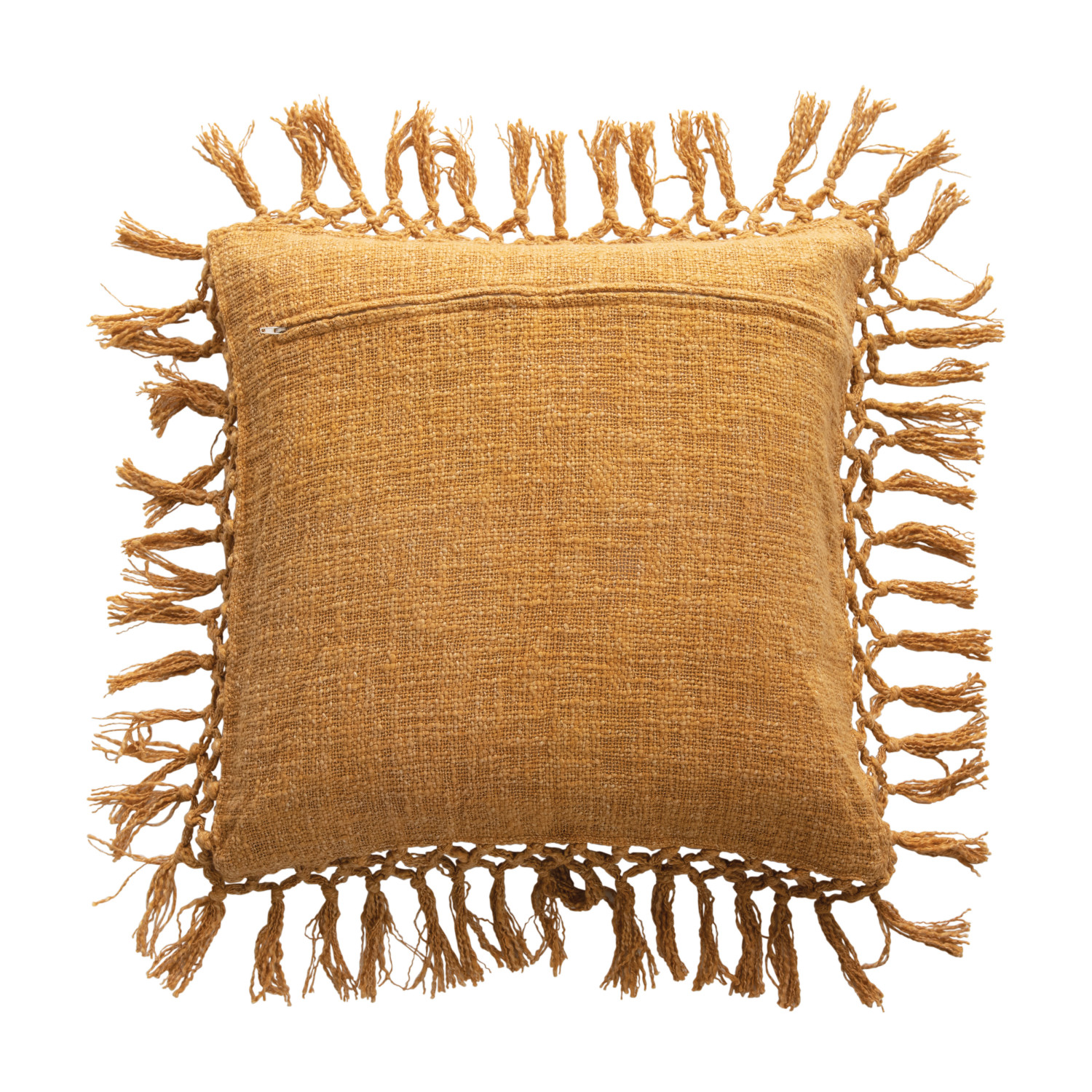 Catalog Name: 20" Square Cotton Slub Pillow w/ Crochet & Fringe, Mustard Color