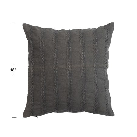 20" Cotton Slub Pillow w/ Crochet & Fringe, Polyester Fill