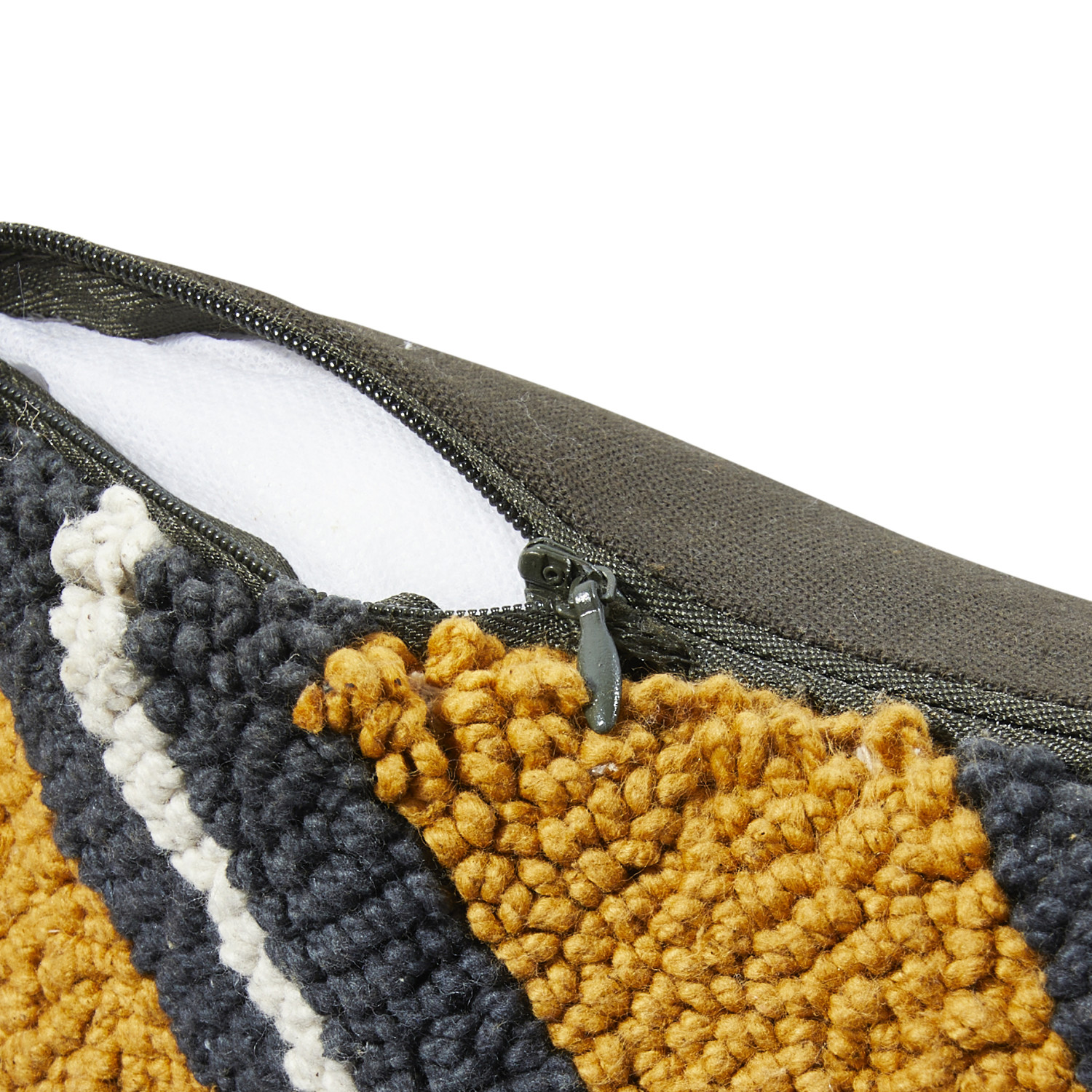 Multicolor punch hook pillow with chevron design. Spot Clean Only. Prop 65 Compliant.