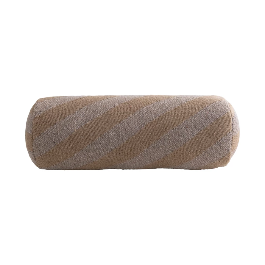 This mid-century-inspired bolster pillow features recycled cotton blend construction with woven 2-tone stripes. Lavender and taupe striped woven recycled cotton bolster pillow. Express your constantly evolving style with the simple addition of this eye-catching pillow. Spot clean only.