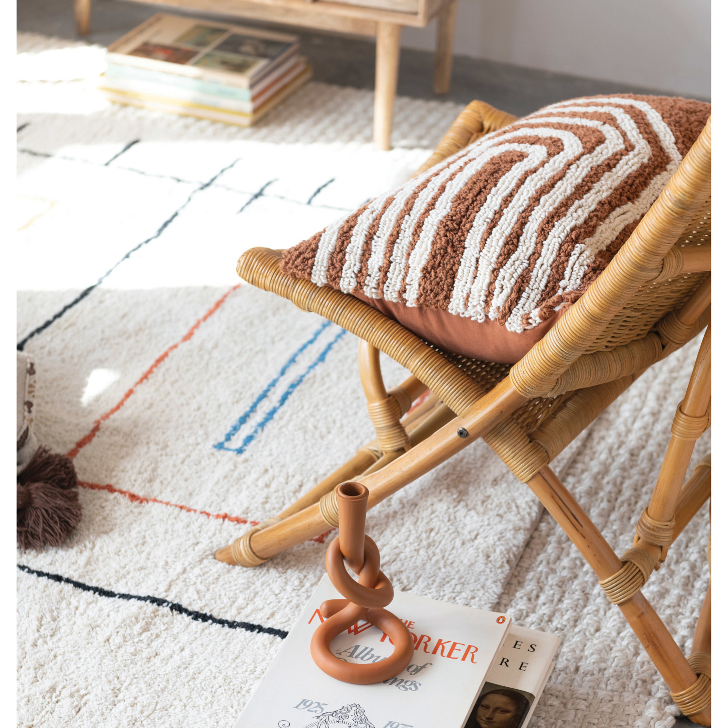 This strikingly modern lumbar pillow cover showcases luxurious tufted cotton construction with a woven geometric design. Sienna and white tufted cotton lumbar pillow with geometric design; Tonal duck cotton encasement on back. Express your constantly evolving style with the simple addition of this eye-catching pillow. Removable lumbar pillow cover with polyester insert; Back zipper with hidden flap; Machine wash cold, gentle cycle, do not bleach, warm iron if needed.