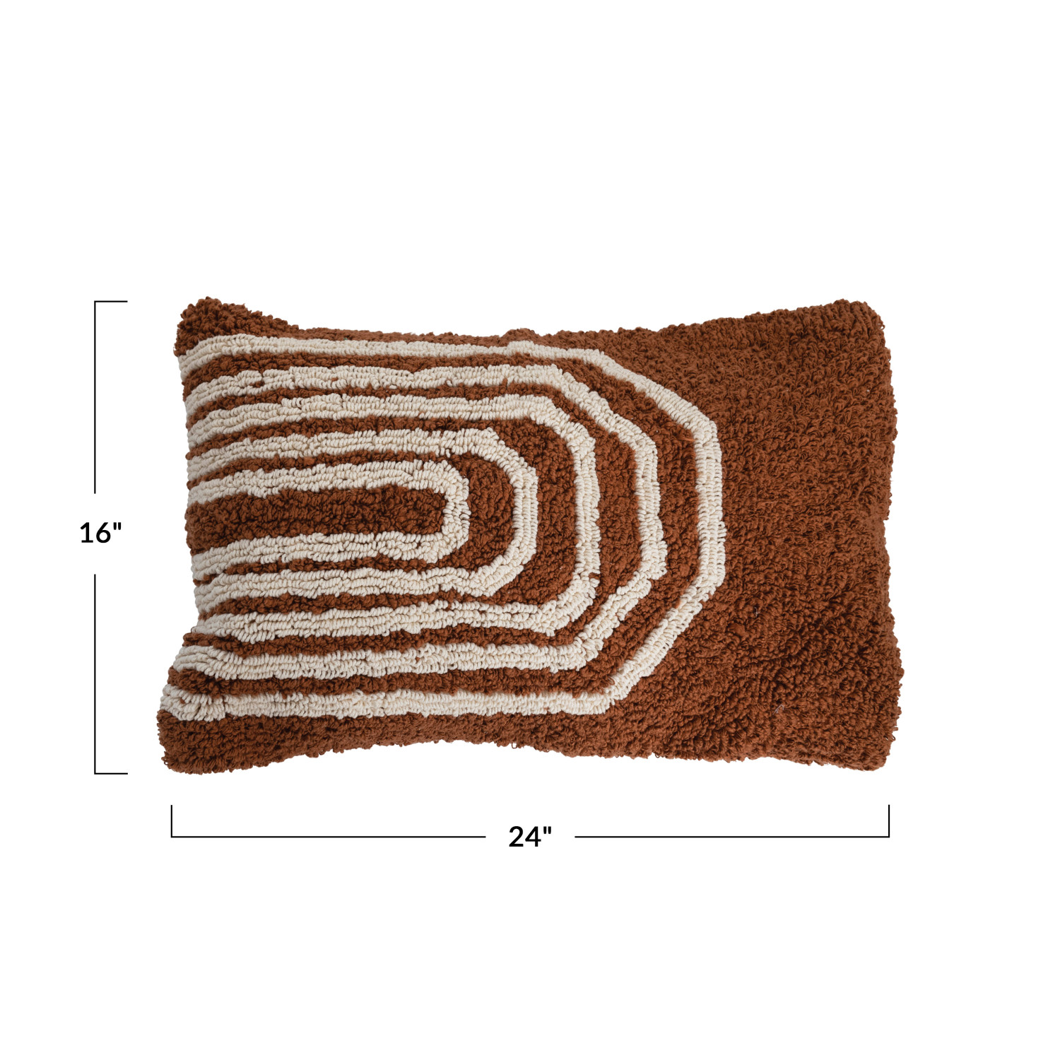 Catalog Name: 24"L x 16"H Cotton Tufted Lumbar Pillow w/ Geometric Design, Sienna Color & White