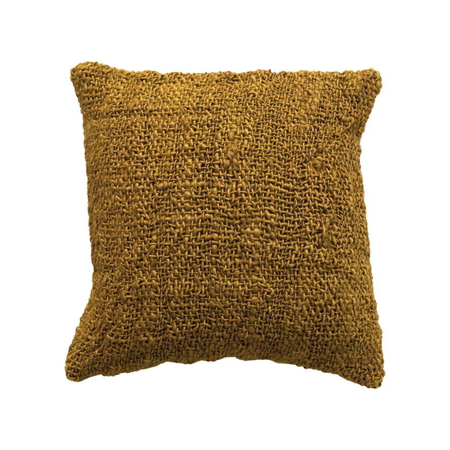 This organically woven throw pillow cover showcases cotton and jute construction in a rich finish. Square chartreuse woven cotton and jute throw pillow; Tonal cotton encasement on back. Express your constantly evolving style with the simple addition of this eye-catching pillow. Removable cotton throw pillow cover with polyester insert; Back zipper with hidden flap; Spot clean only.