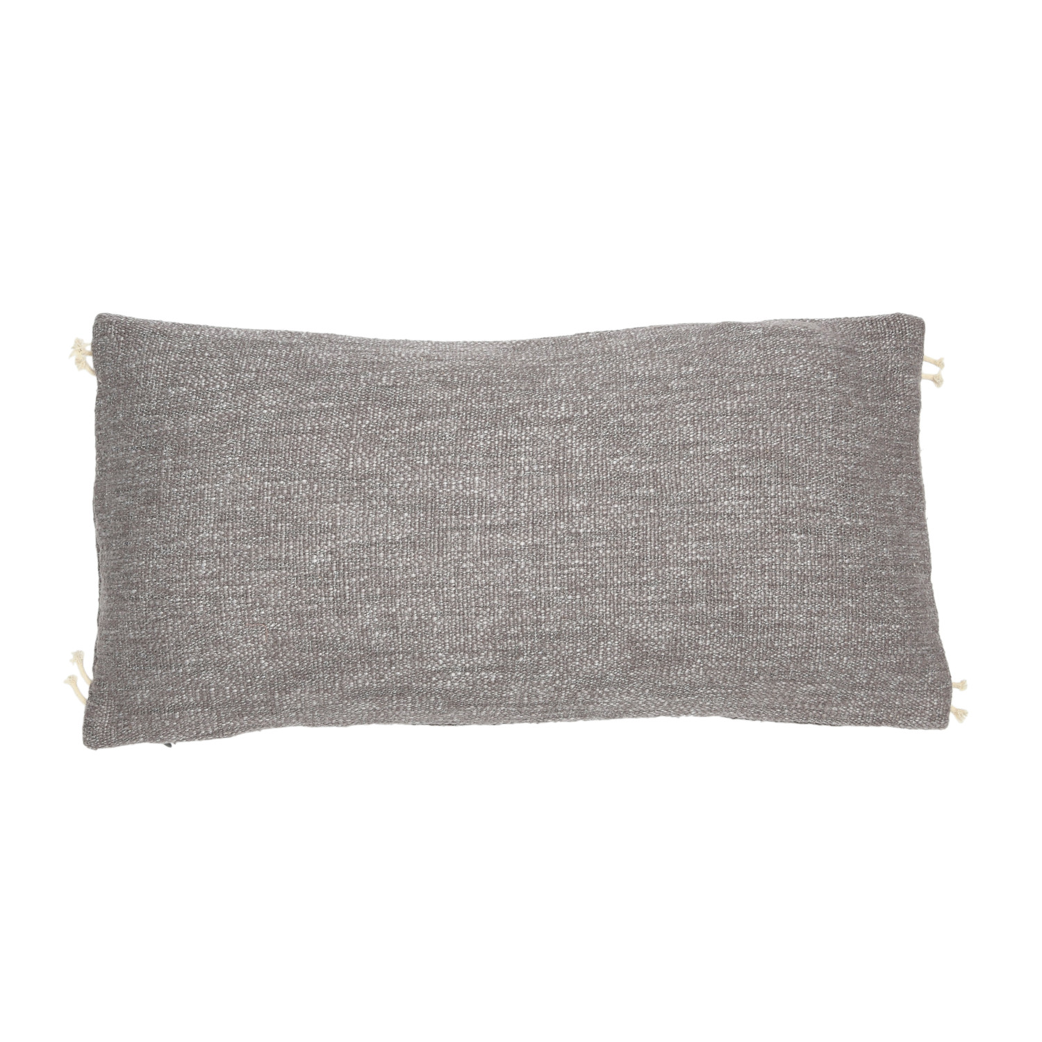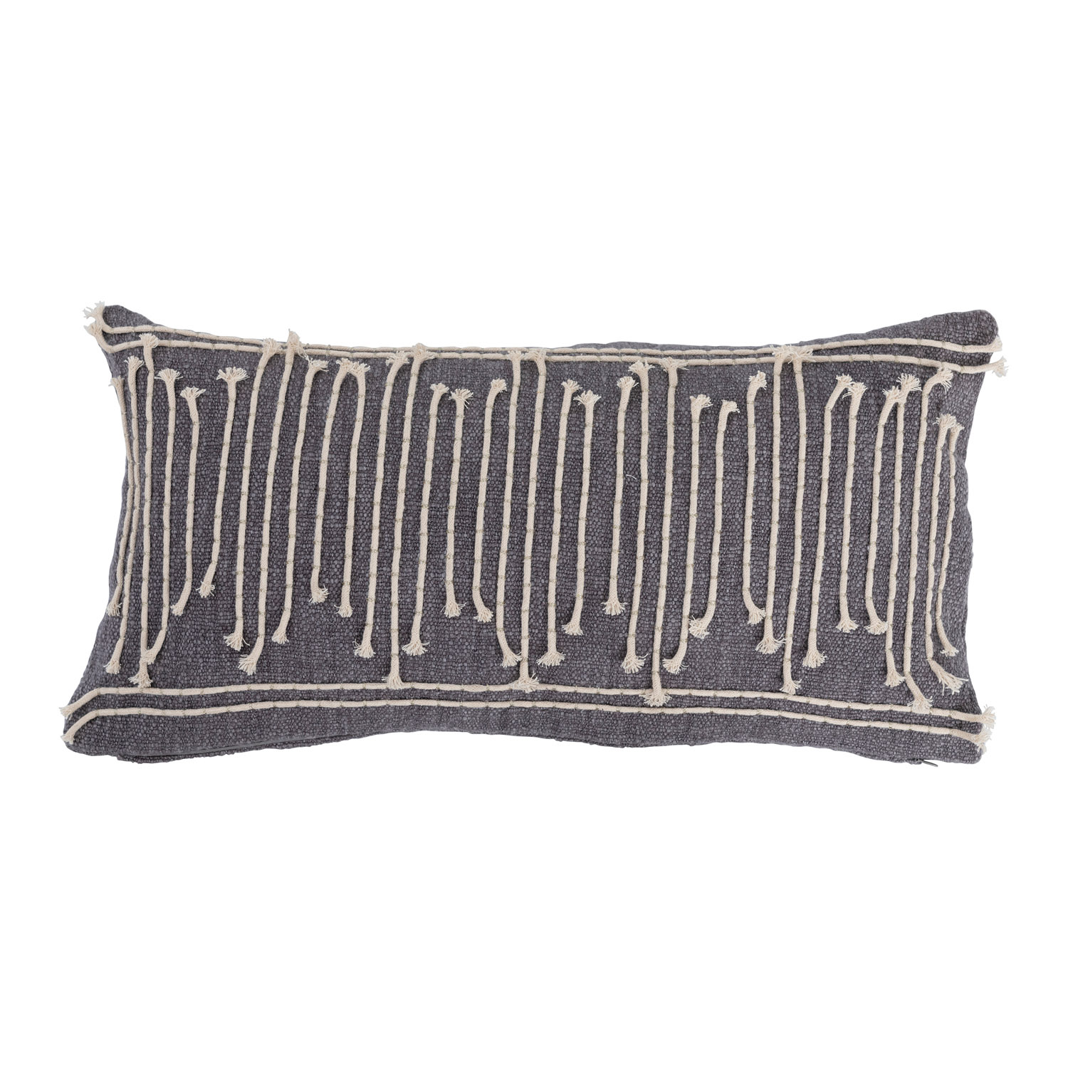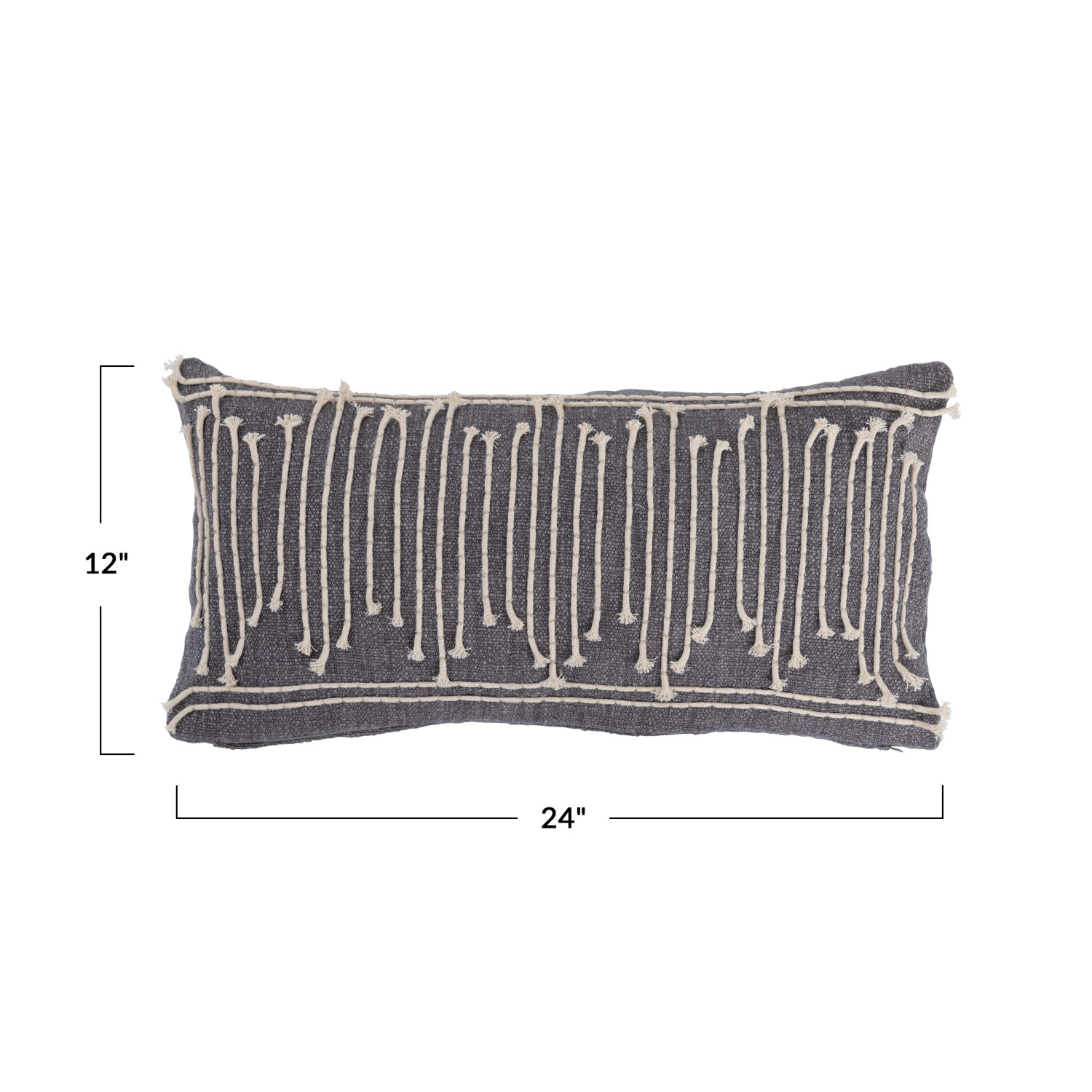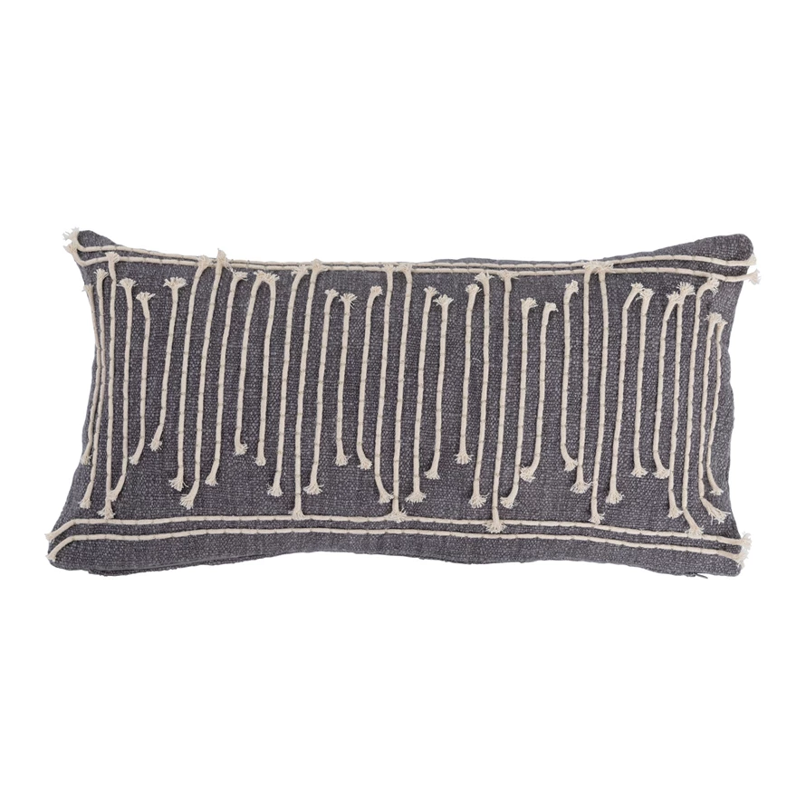 Catalog Name: 24"L x 12"H Cotton Lumbar Pillow w/ Appliqued Rope & Metallic Embroidery, Dark Grey & Natural