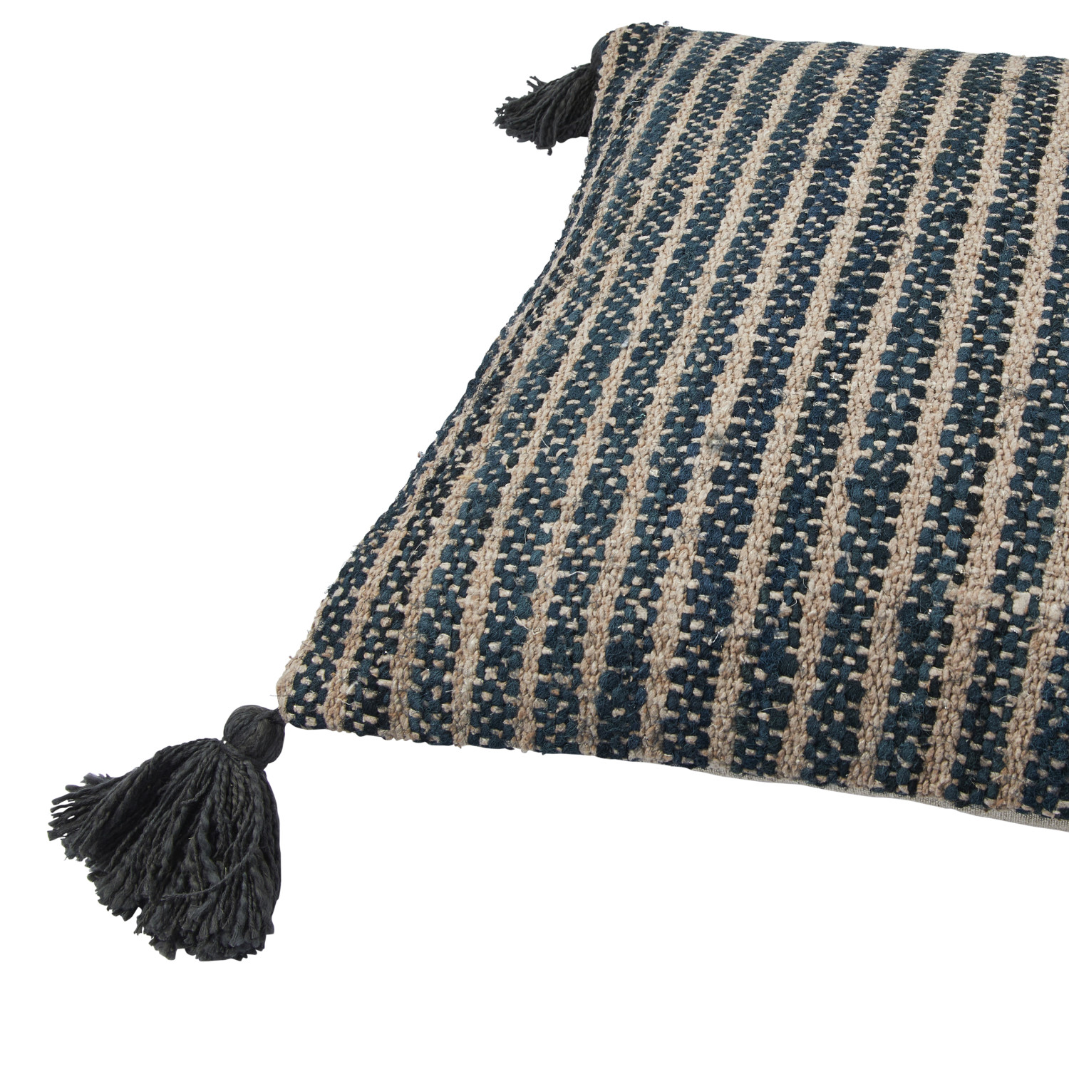 18" Woven Cotton Pillow w/ Stripes & Tassels, Polyester Fill