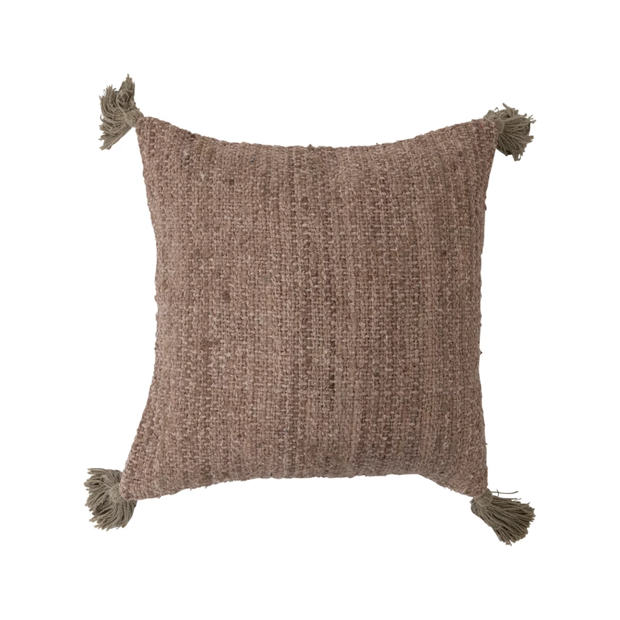 This unique, textural throw pillow cover features intricately woven cotton stripes, finished with decorative tassels. Multicolor woven cotton striped throw pillow with tassels; Natural chambray on back. Express your constantly evolving style with the simple addition of this eye-catching pillow. Removable throw pillow cover with polyester insert; Back zipper with hidden flap; Spot clean only.