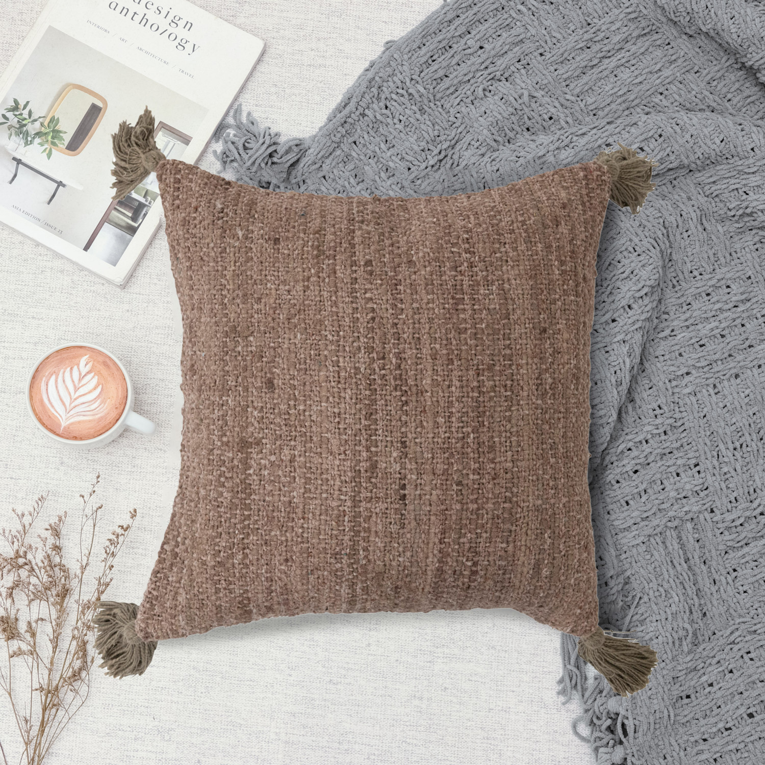This unique, textural throw pillow cover features intricately woven cotton stripes, finished with decorative tassels. Multicolor woven cotton striped throw pillow with tassels; Natural chambray on back. Express your constantly evolving style with the simple addition of this eye-catching pillow. Removable throw pillow cover with polyester insert; Back zipper with hidden flap; Spot clean only.