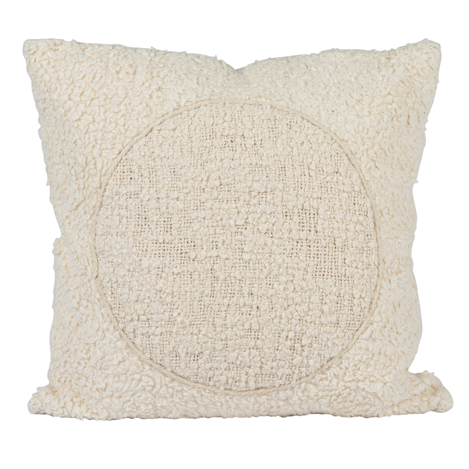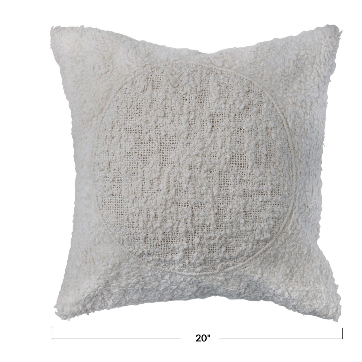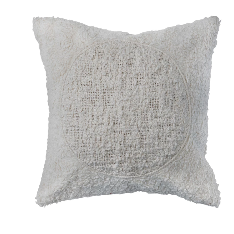 Catalog Name: 20" Square Cotton Sherpa Pillow w/ Embroidered Circle, Cream Color