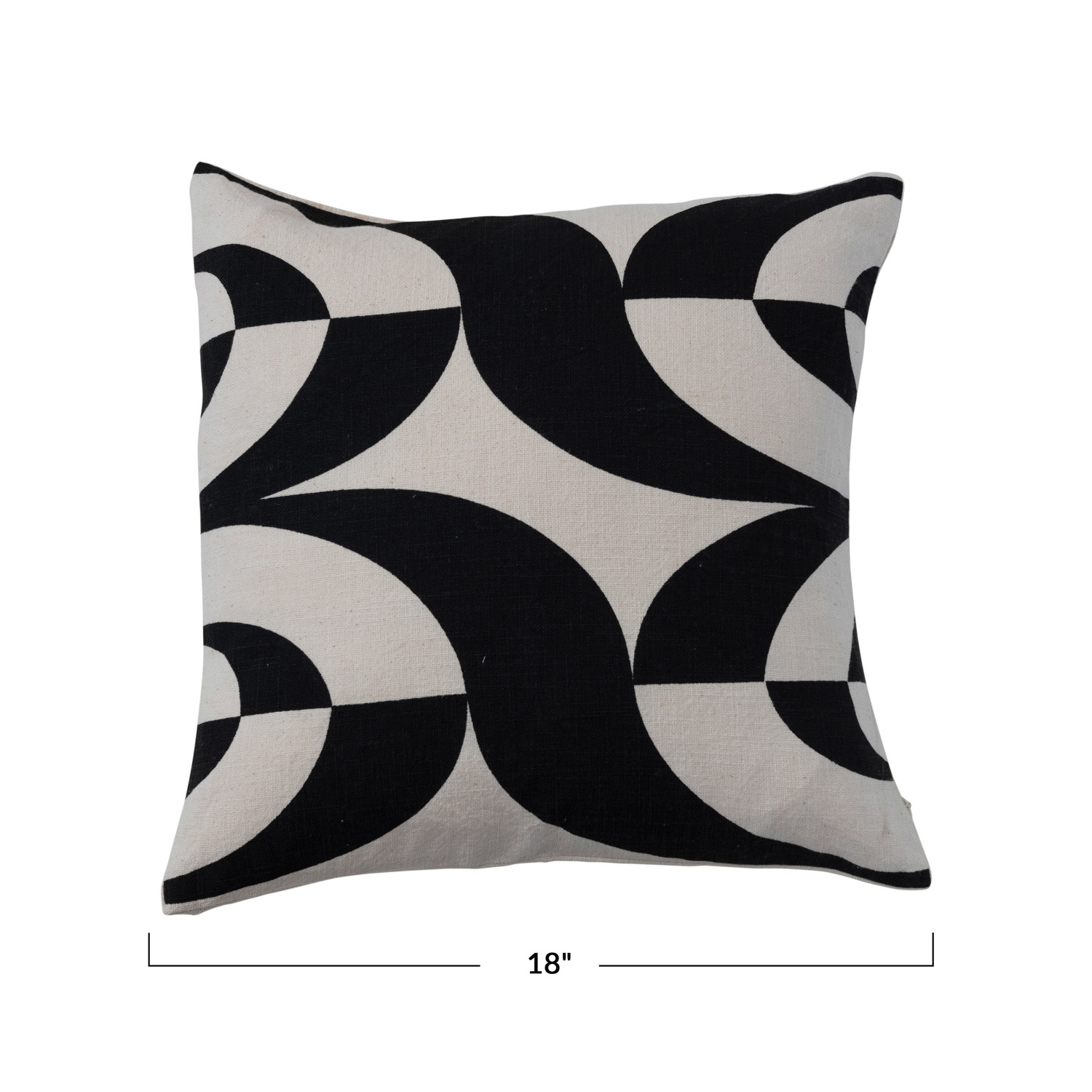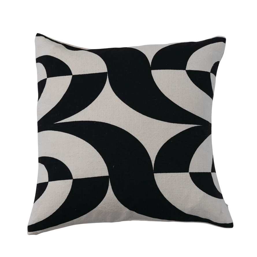 Catalog Name: 18" Square Cotton Slub Printed Pillow w/ Pattern, Black & Natural