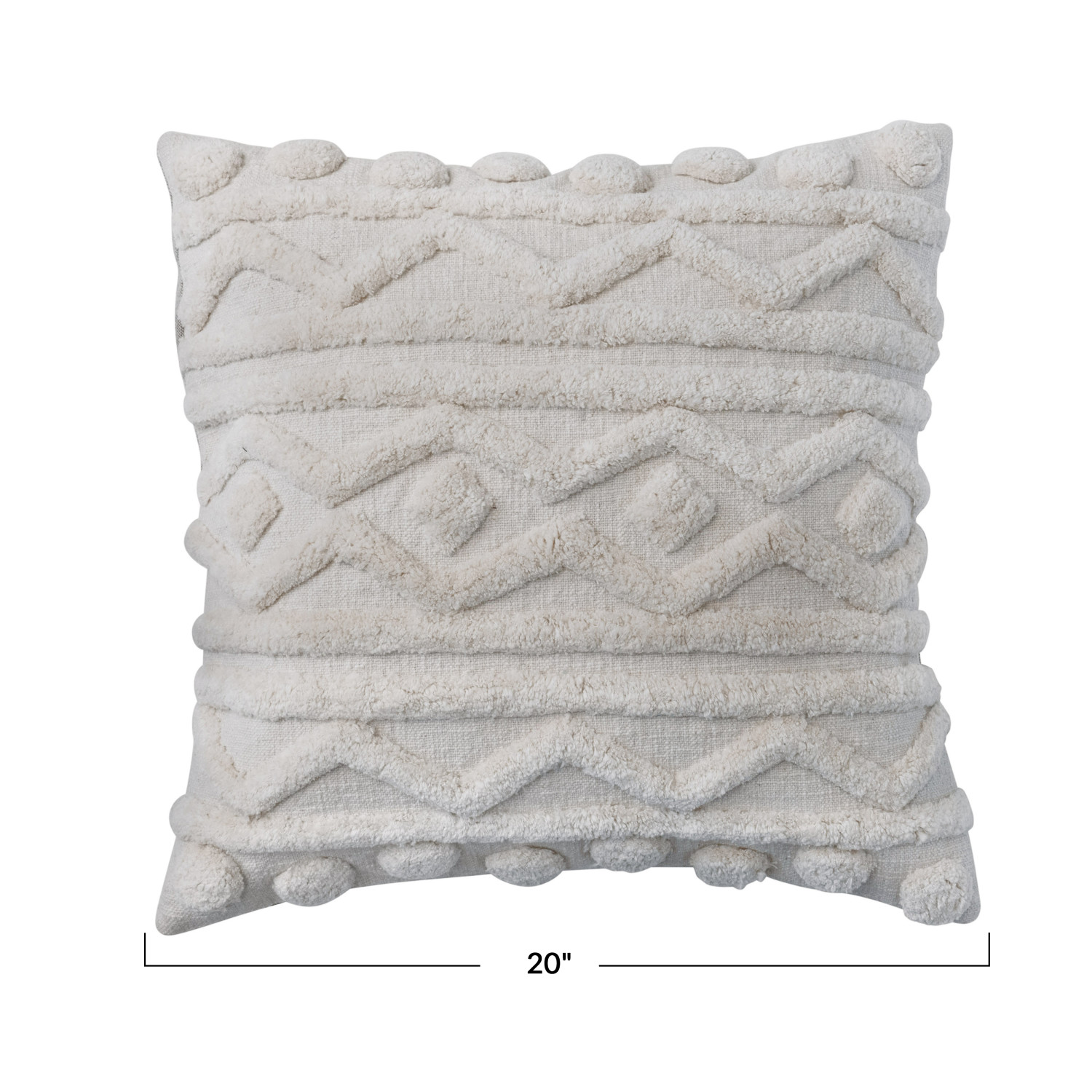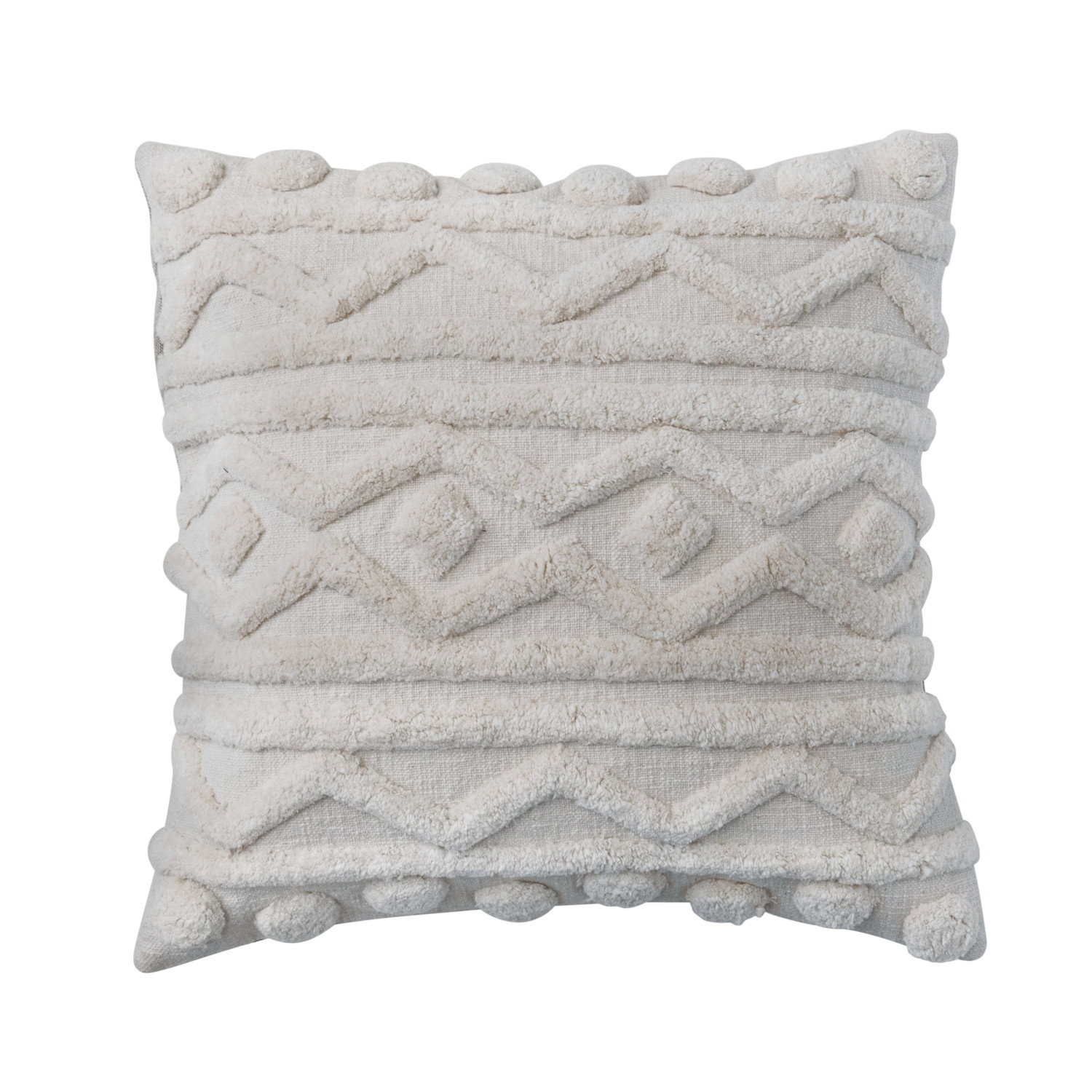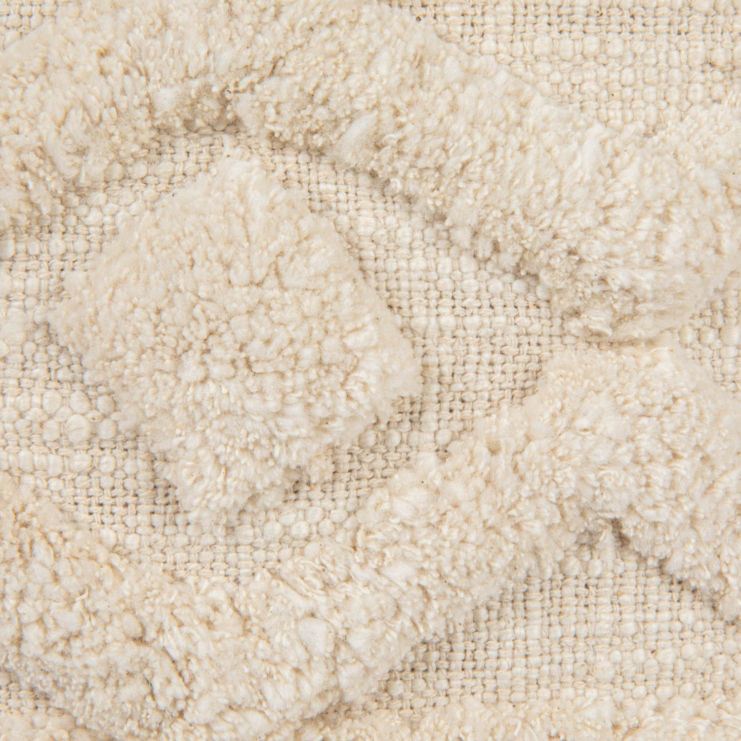 This boho inspired throw pillow features soft cotton construction finished with a tufted geometric design. Includes polyfill insert. Machine Wash Warm Gentle Cycle, Do Not Bleach, Tumble Dry Low, Warm Iron If Needed or Hand Wash. Made from cotton and polyester.