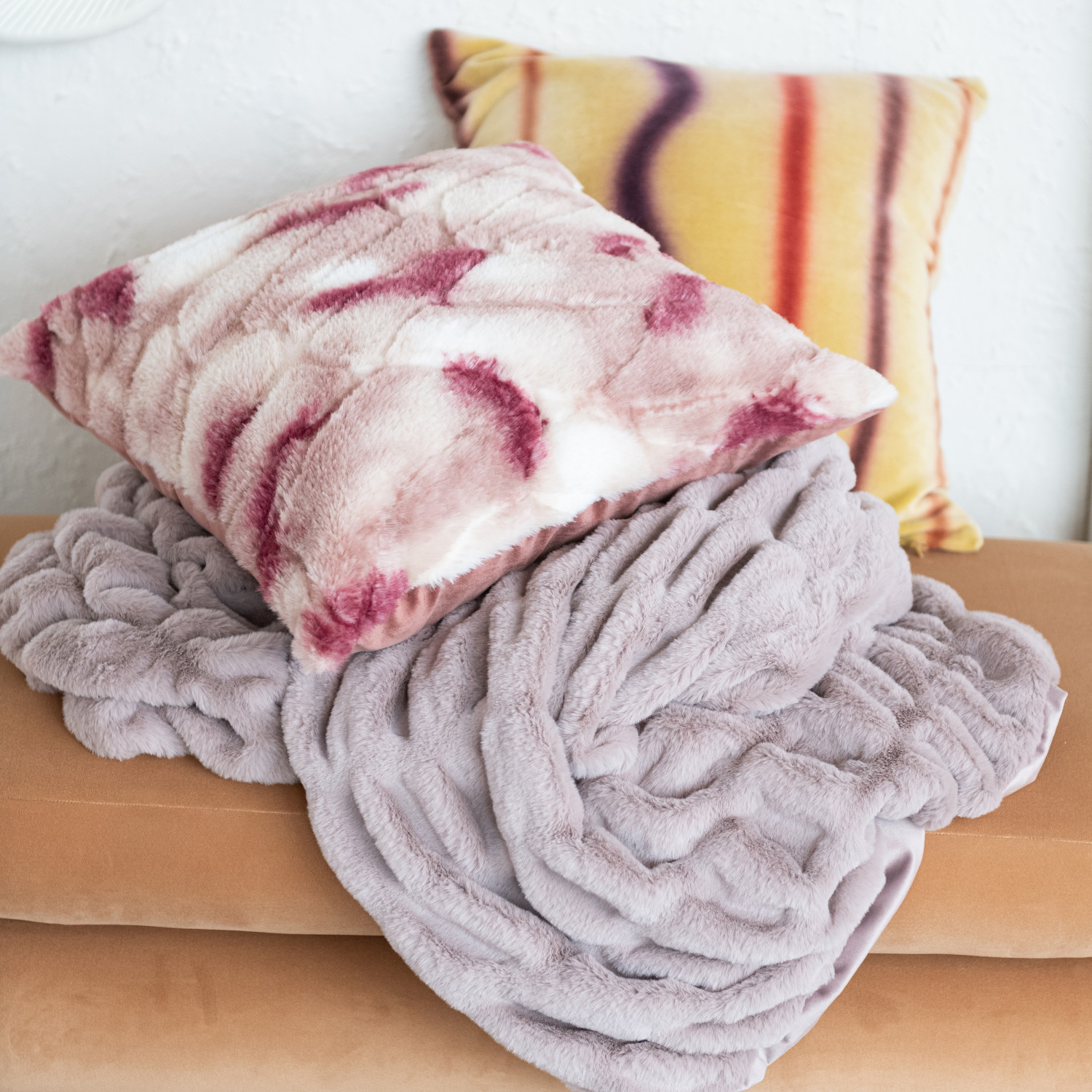 18" Square Faux Fur Pillow with Acid Wash Effect & Velvet Back