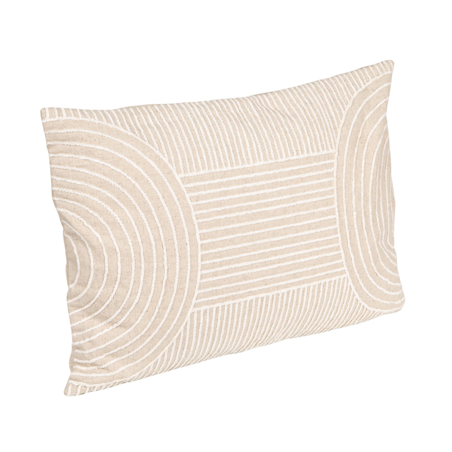 Catalog Name: 20"L x 14"H Cotton Blend Embroidered Lumbar Pillow w/ Geometric Stripes, White & Natural