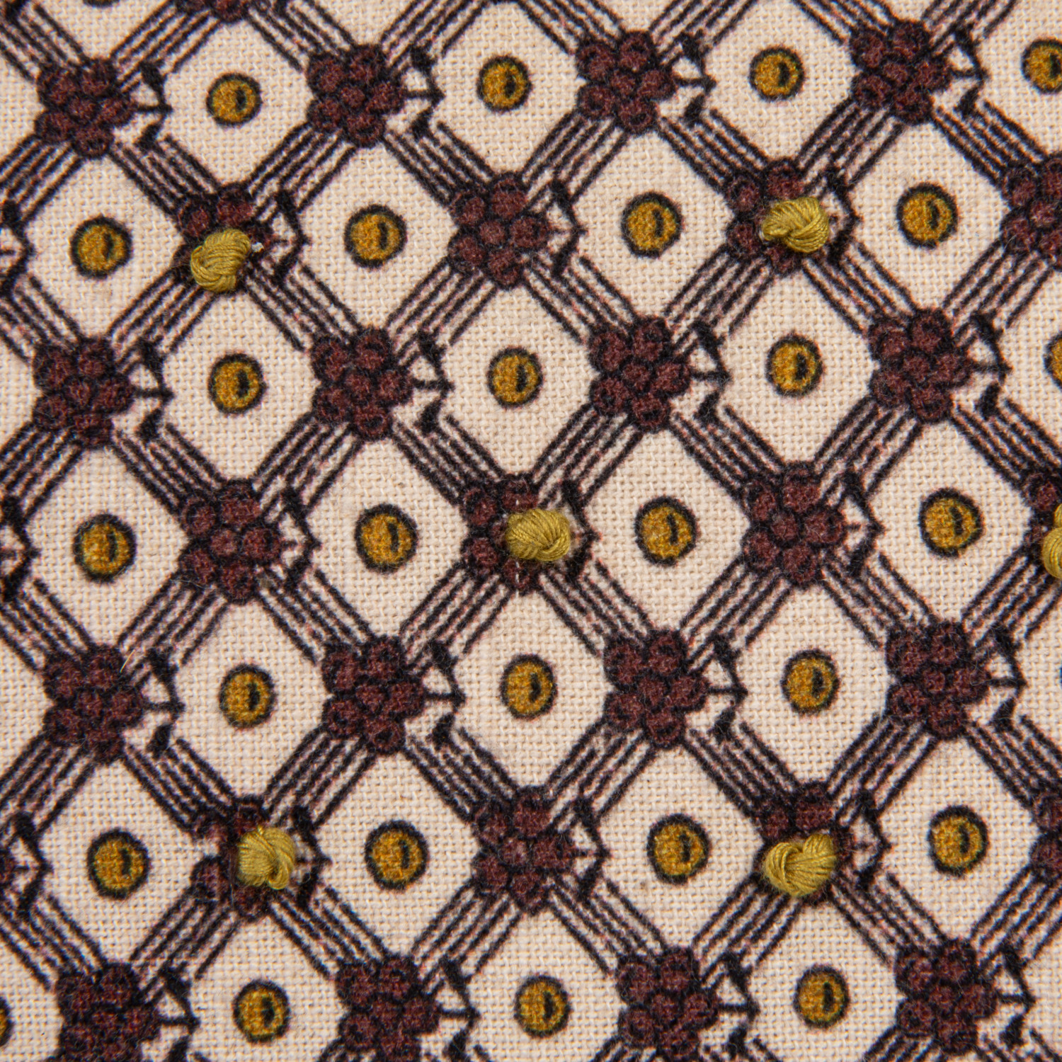Cotton Printed Lumbar Pillow with Tassels, French Knots & Pattern
