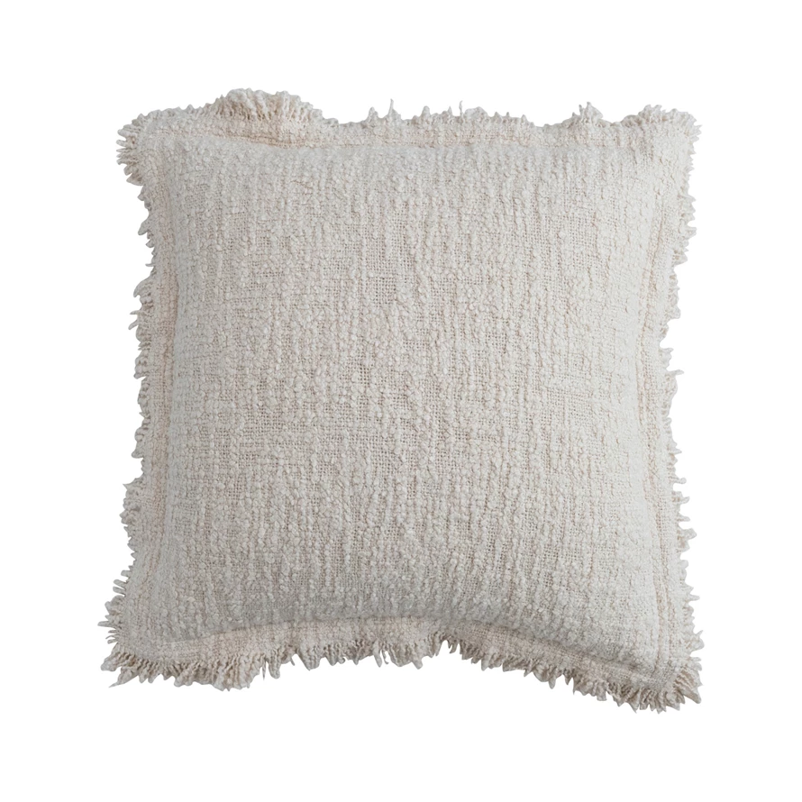 Catalog Name: 20" Square Woven Cotton Bouclé Pillow w/ Fringe & Flanged Edge, Natural