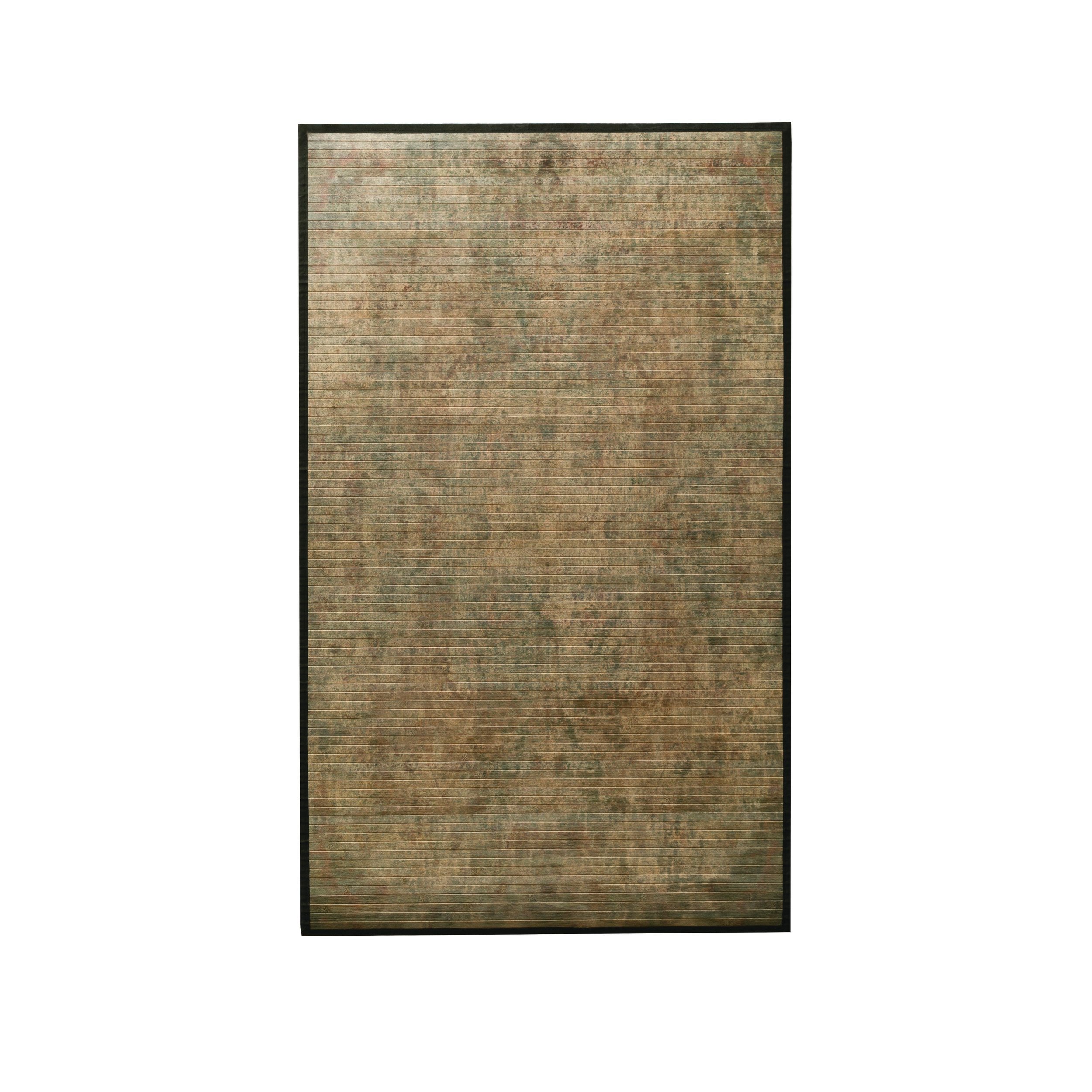 This 3 foot by 5 foot Bamboo mat comes in a multicolor cloth pattern. The scallop design adds texture and contrast to the regular bamboo mat. A beautiful black border grounds the natural gold and green colored mat. Place this rug in a front hallway or under a coffee table, as a perfect layer to add natural texture.