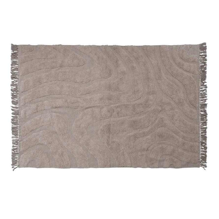 This nature inspired rug features supple melange cotton with a tufted wave design and decorative fringe.