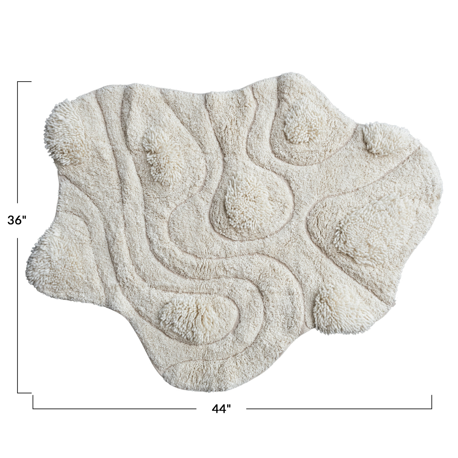 Catalog Name: 3' x 3'8" Cotton & Wool Tufted Organic Shaped Rug w/ Design & Varying Pile Height, Natural