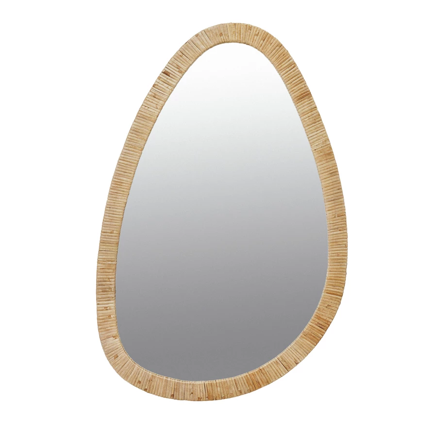 Catalog Name: 18"W x 27-1/2"H Rattan Wrapped Wood Framed Organic Shaped Wall Mirror, Natural, Truck Ship (Hangs Vertically & Horizontally)