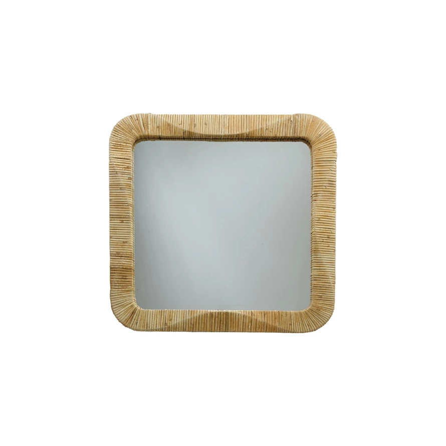Catalog Name: 20-1/4" Square Rattan Wrapped Framed Wall Mirror, Natural