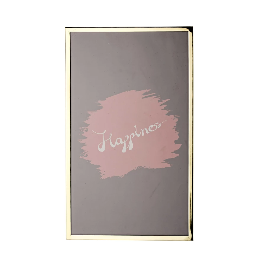 Catalog Name: 11-3/4"W x 19-1/2"H Metal Framed Glass Wall Decor "Happiness"