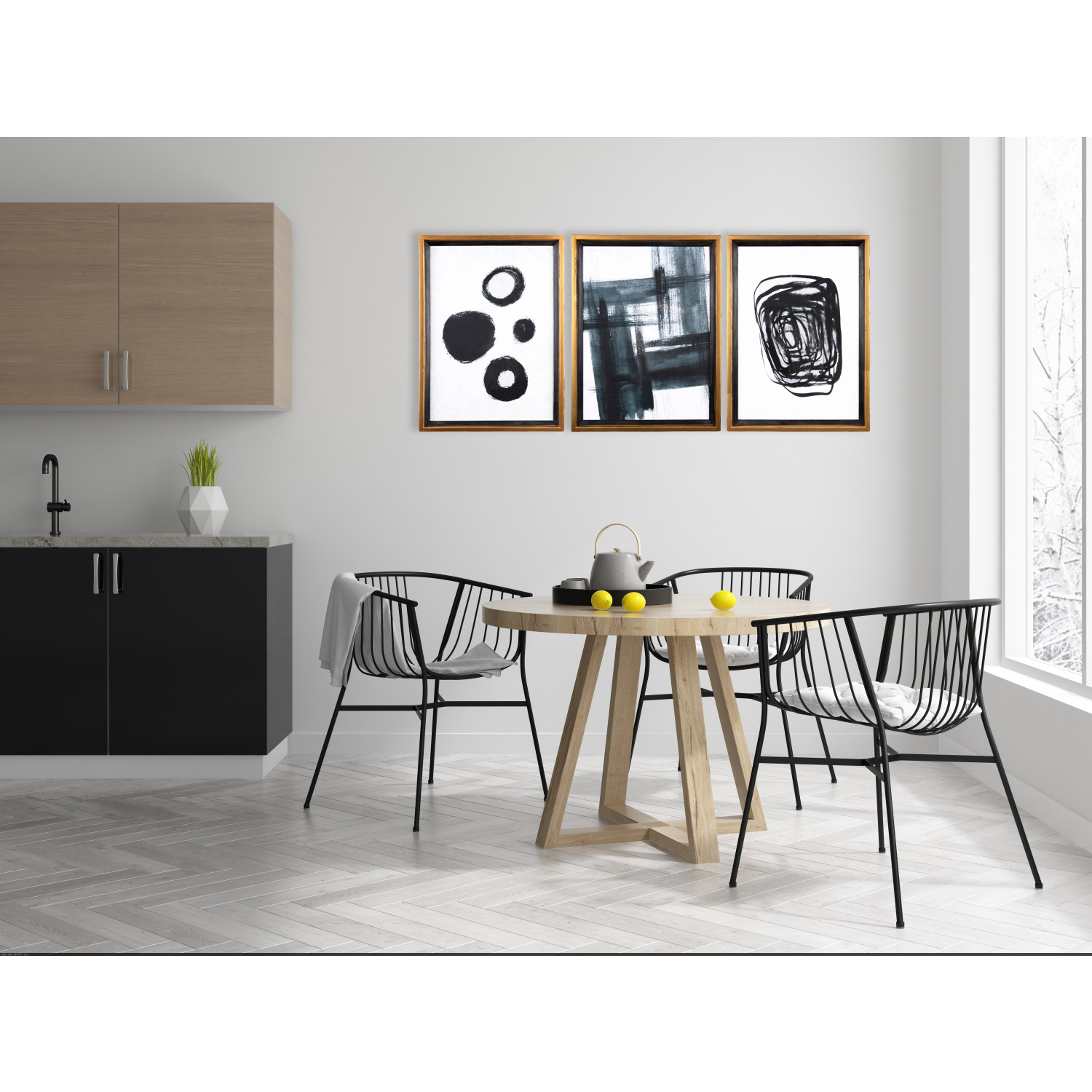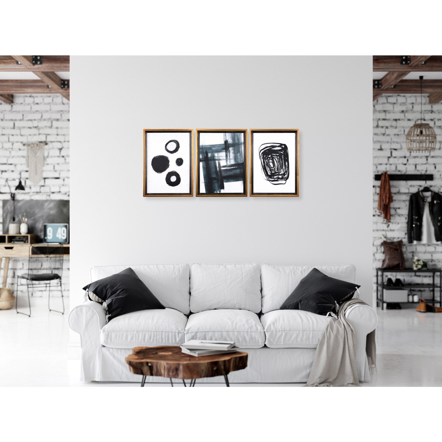 The black and white pallet can provide a contemporary accent to the wall in a variety of room styles.
