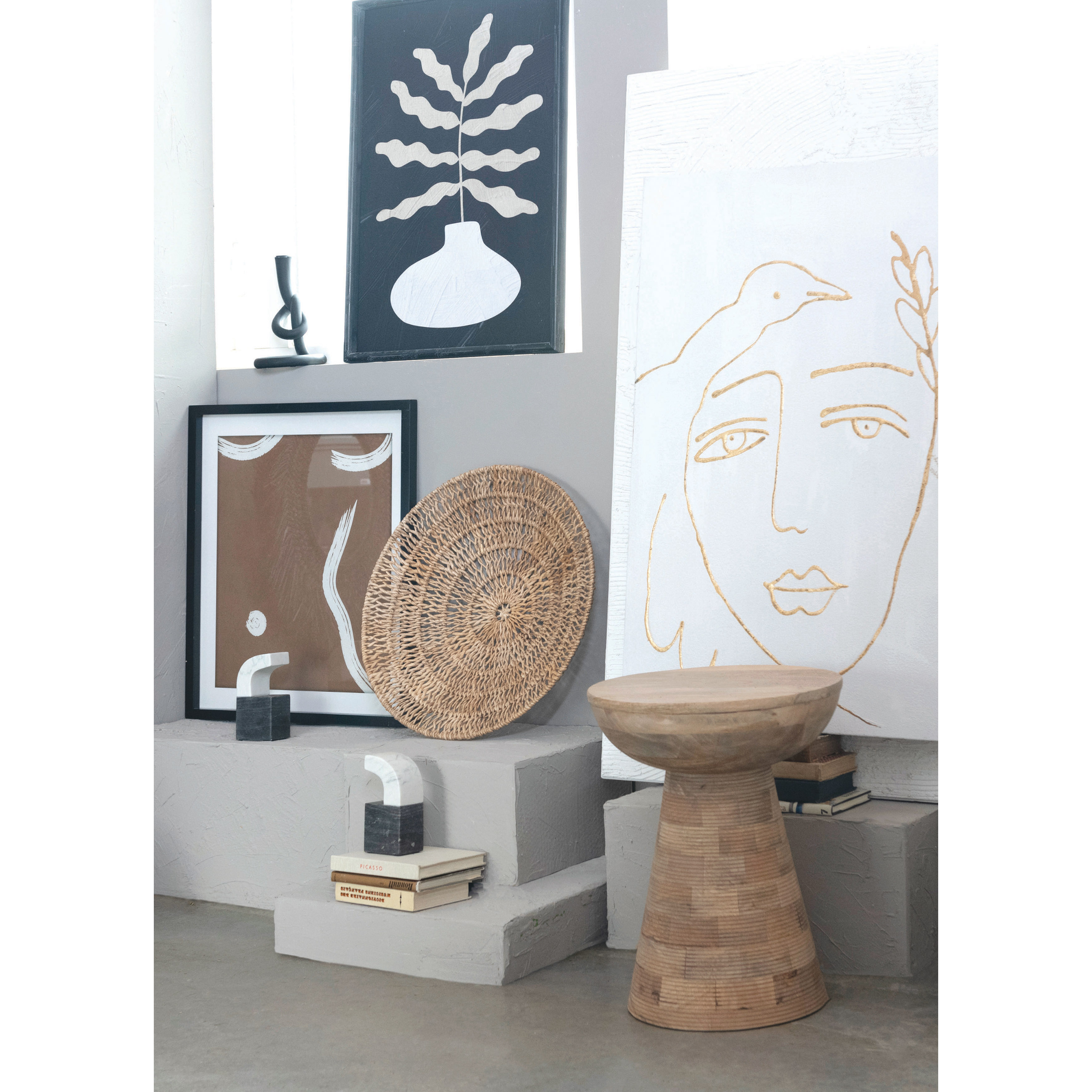 This striking, abstract wall art showcases a painterly feminine form in a sleek wood frame. Sienna abstract feminine form print in black wood frame with glass cover. Display this stunning wall decor to effortlessly enhance the design of any living space. Made from fir wood, sustainable MDF, glass, and paper.
