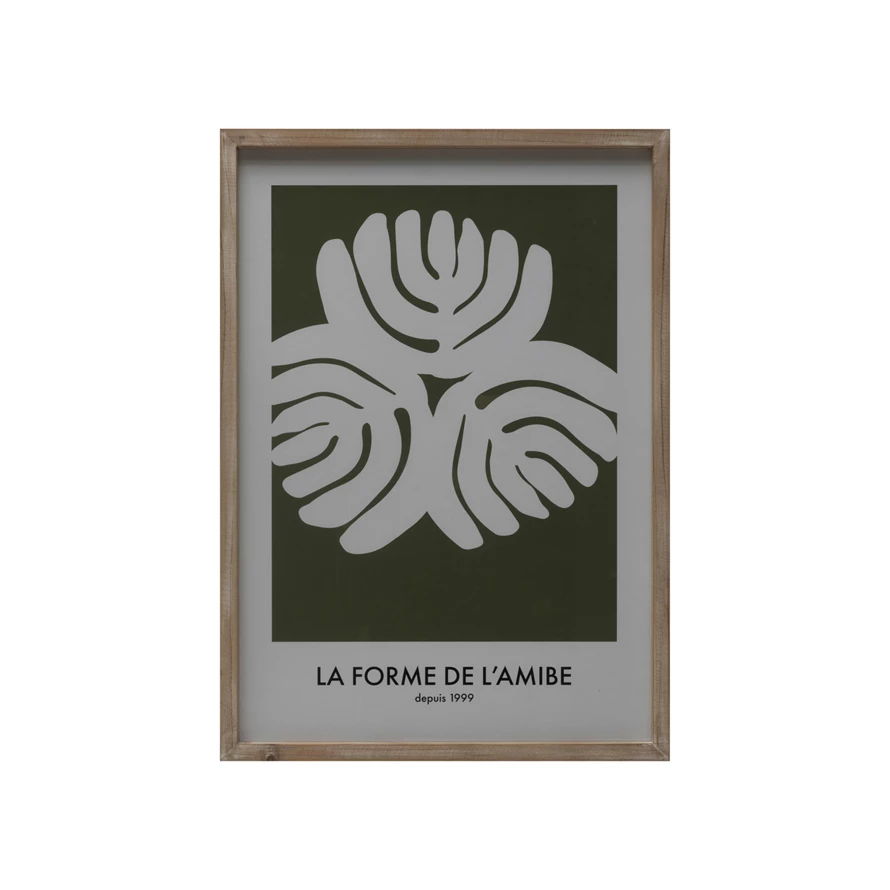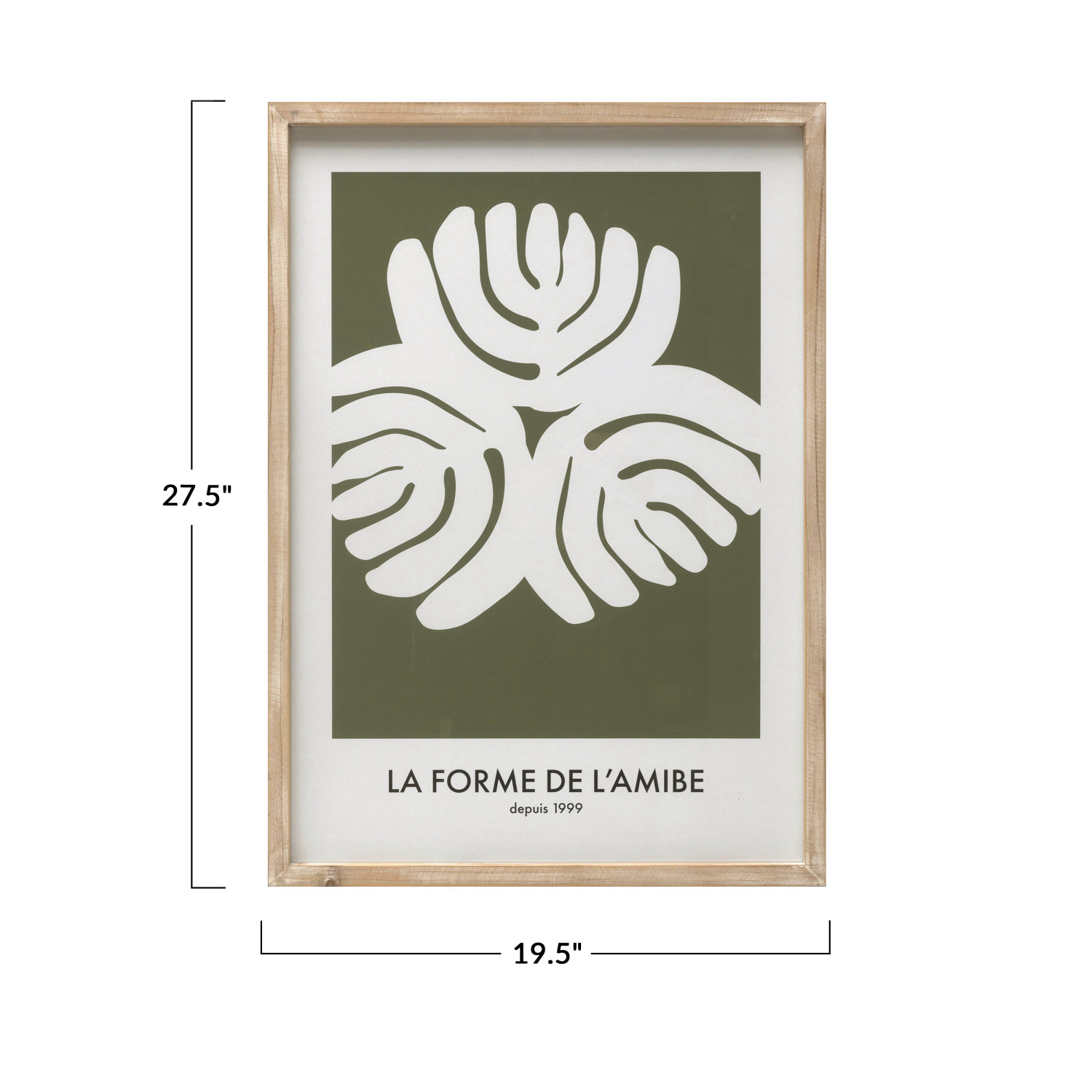 Wood Framed Glass Wall Décor w/ Abstract Floral Print "La Forme De L'Amibe…"