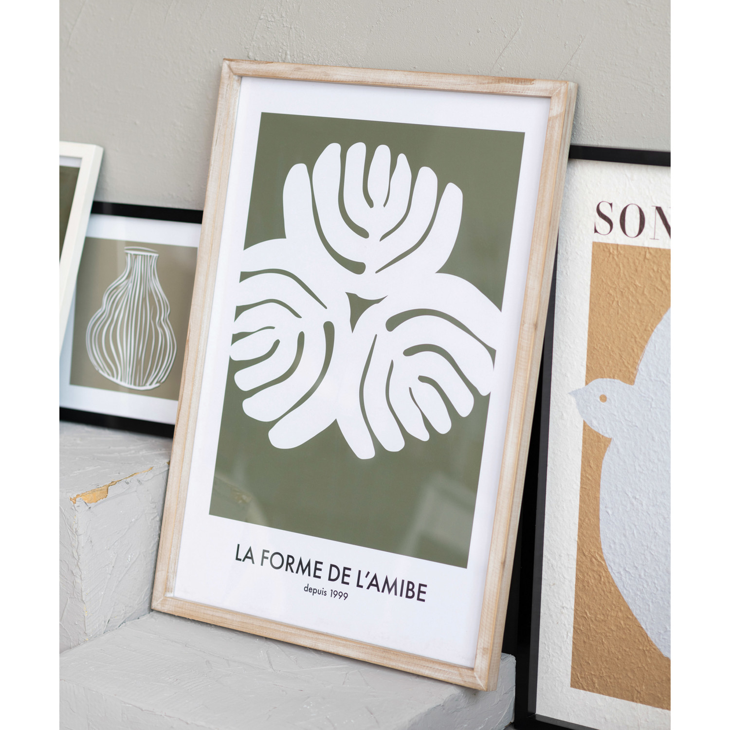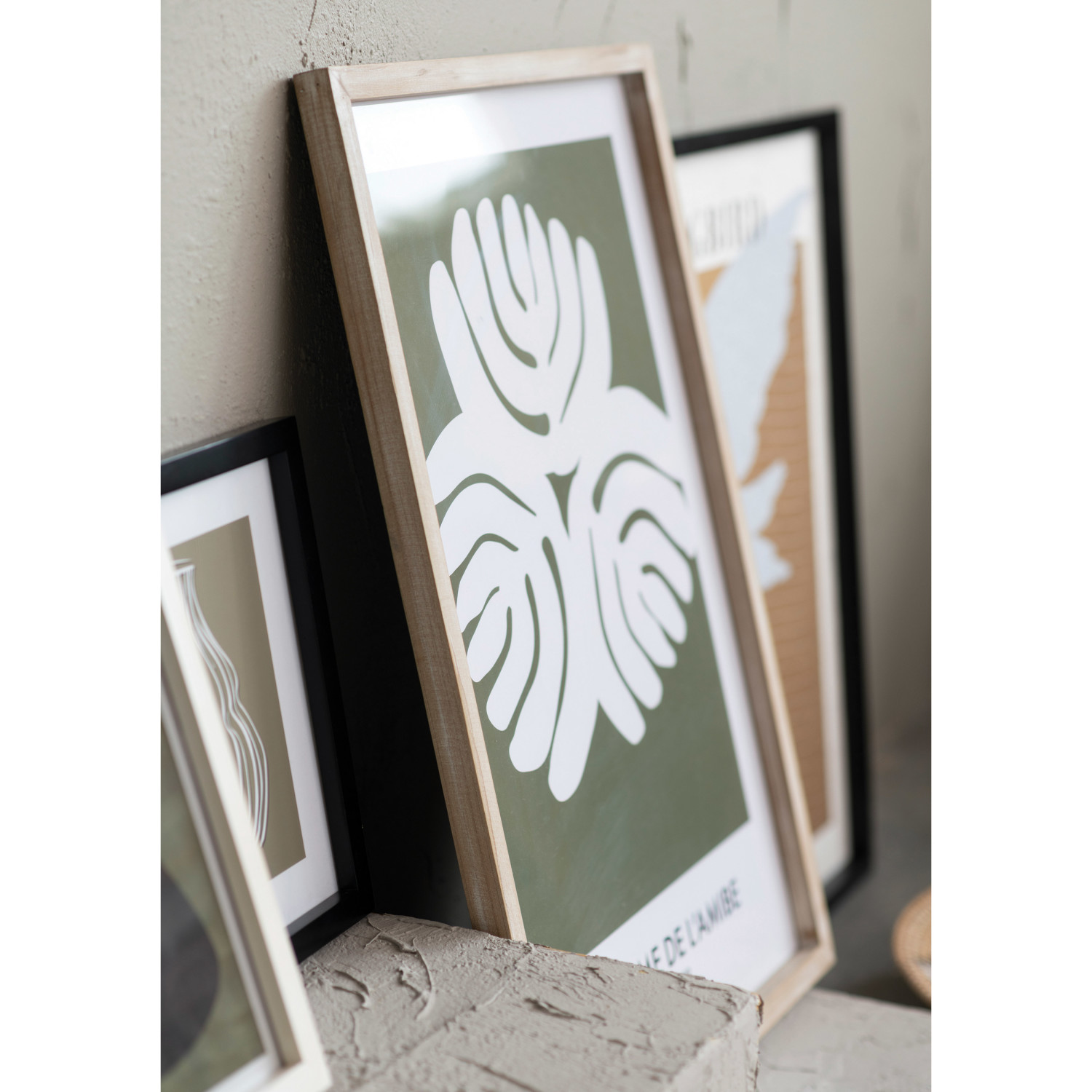 Catalog Name: 19-1/2"W x 27-1/2"H Wood Framed Glass Wall Décor w/ Abstract Floral Print "La Forme De L'Amibe…", Olive Green & White, Truck Ship