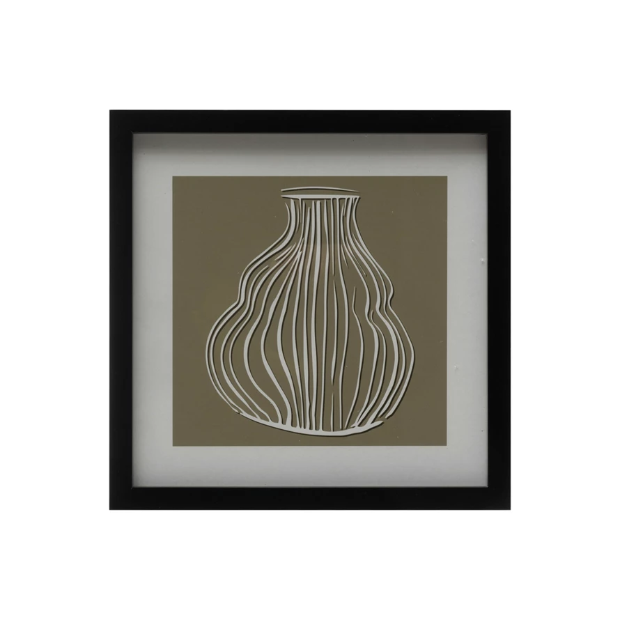 Catalog Name: 11-3/4" Square Wood Framed Glass Wall Décor w/ Vase, Beige & White, Truck Ship