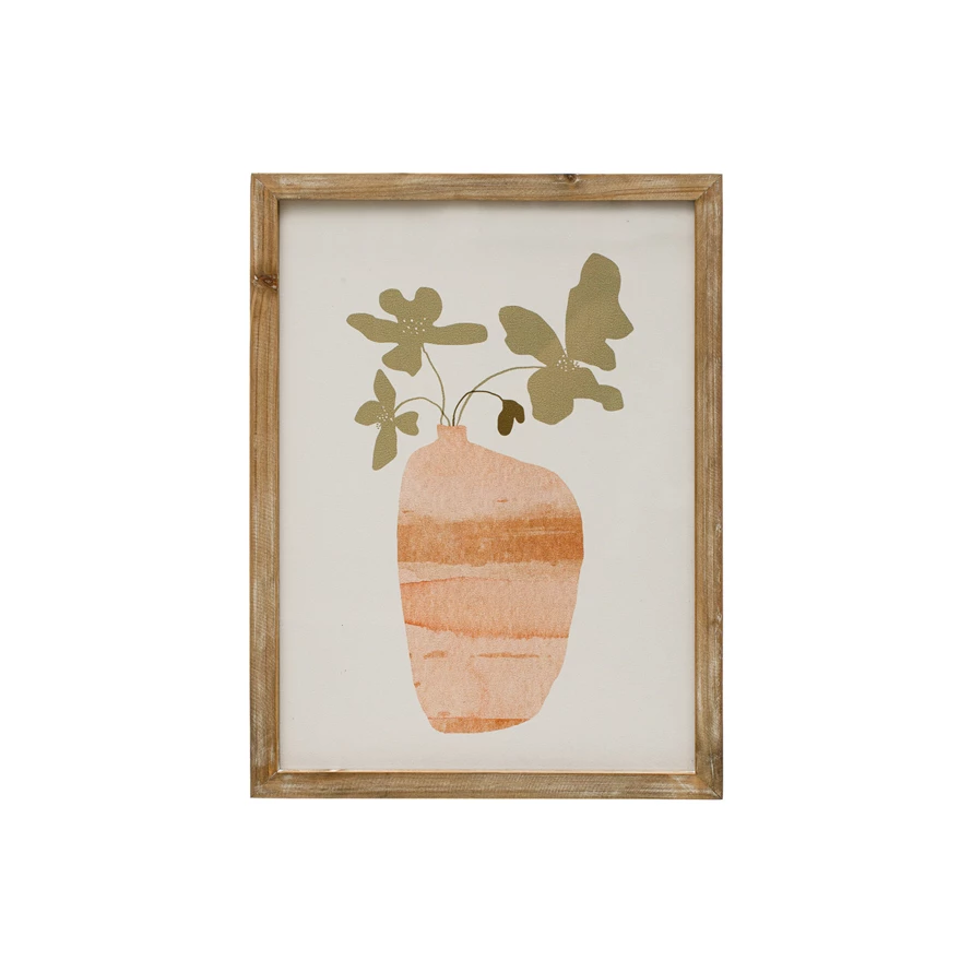 From framed canvases and abstract art compositions, to vintage reproductions and botanical prints, our carefully curated collection of wall art has the perfect item to complete any space. Explore an expansive catalog of pieces including nature-inspired prints, line drawings, inspirational quotes, hand-painted designs, and so much more. Choose from a vast selection of materials from glass and wood to canvas and fabric, and styles from contemporary boho and mid-century modern to classic farmhouse and vintage glam. Effortlessly amplify a room's dimensions, express personal style, create a stylish focal point, or simply make the perfect design statement or unique addition to a gallery wall. This boho-inspired wall art features a contemporary print of flowers in a vase encased in a solid wood frame. Display in a living space of any style from modern to French country. Equipped with mounting hardware on back for easy hanging. Made from wood and glass.