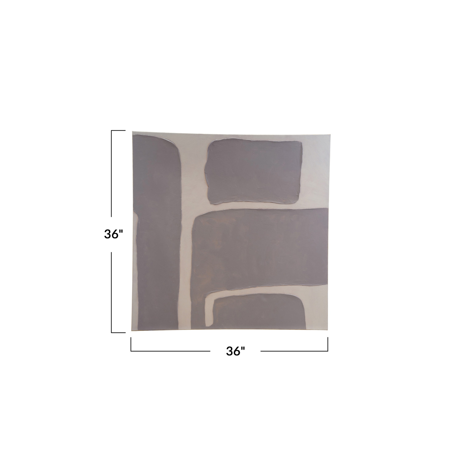 Catalog Name: 36" Square Hand-Painted Canvas Wall Décor w/ Abstract Design, Grey, Cream Color & Gold Finish Edge