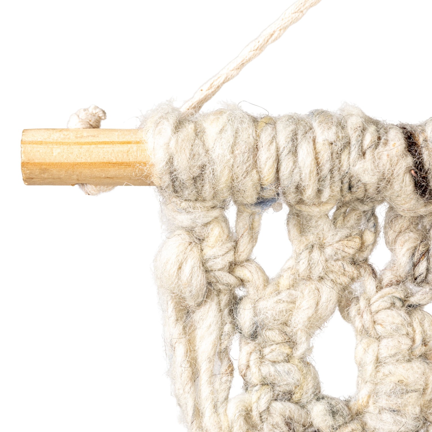 Hand-Woven New Zealand Wool Wall Hanging with Wood Hanger, Natural