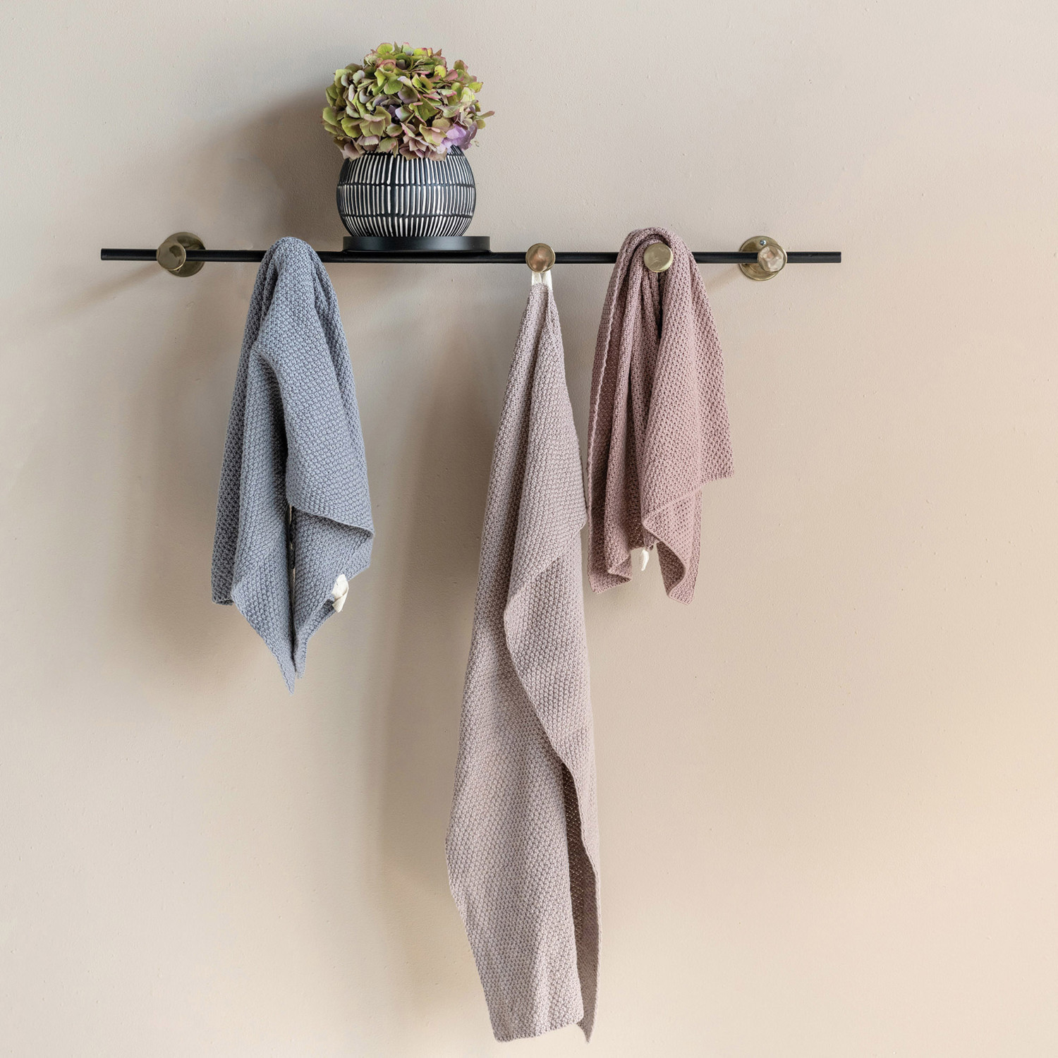 Catalog Name: 32"W x 7-3/4"D x 2"H Metal Wall Hook w/ 1 Shelf & 5 Hooks, Brass Finish, Black