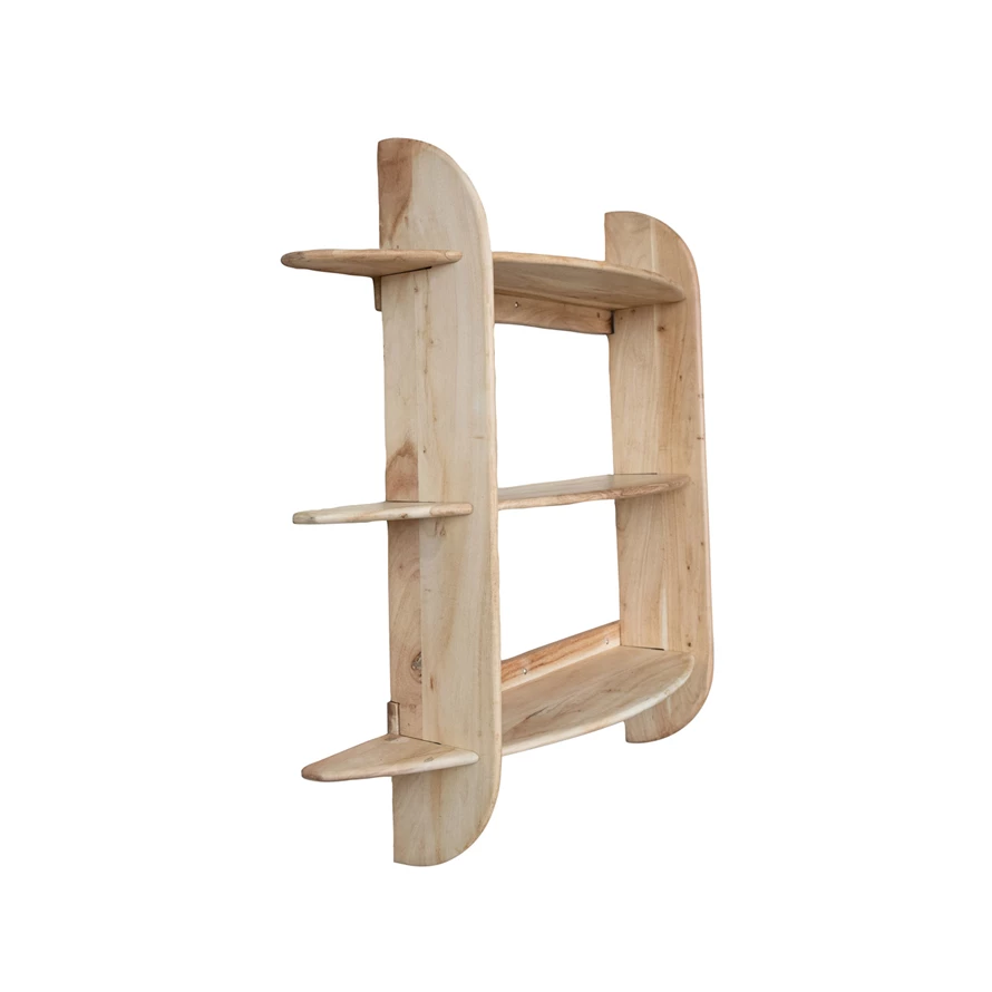 Acacia Wood & Metal Interlocking Wall Shelf with 3 Shelves, KD