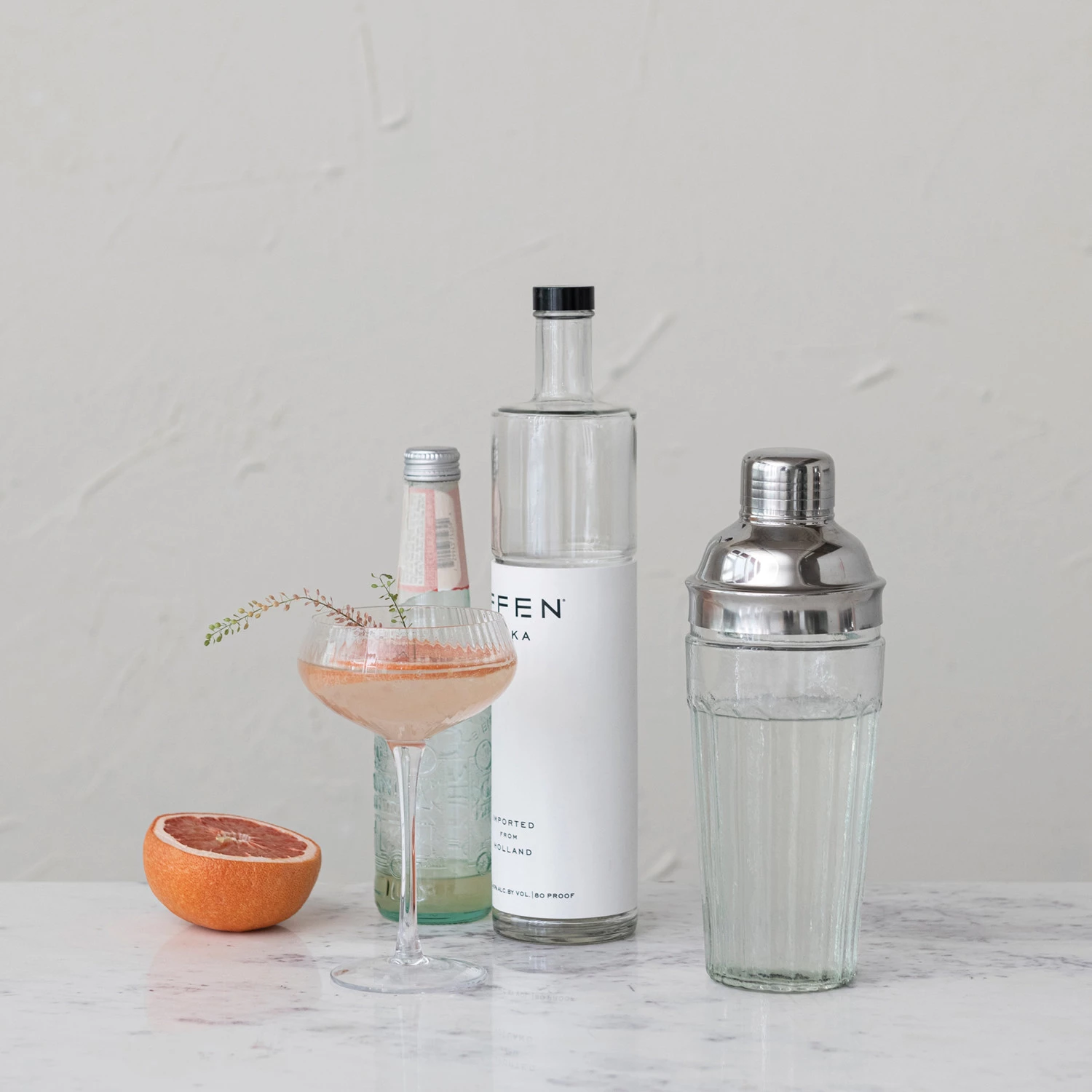 Our thoughtfully crafted collection of barware and decor showcases an expansive selection of functions, designs, and styles created for the modern host. Elevate cocktail hour or evening gatherings with an offering of stylishly versatile pieces including cocktail shakers, mortar and pestles, strainers, bottle openers, champagne flutes, coupes, decanters, martini glasses, wine racks, and so much more. Choose from an array of materials from stainless steel to wood and styles from Mid-Century Modern to Boho chic. Curate a dazzlingly elegant display on a bar cart or inside a display cabinet to impress guests and add a hint of playful flair to any gathering space. This modern take on a classically designed cocktail shaker features an embossed glass base and stainless steel lid. This piece is food safe. Not dishwasher safe. Made from glass and stainless steel.
