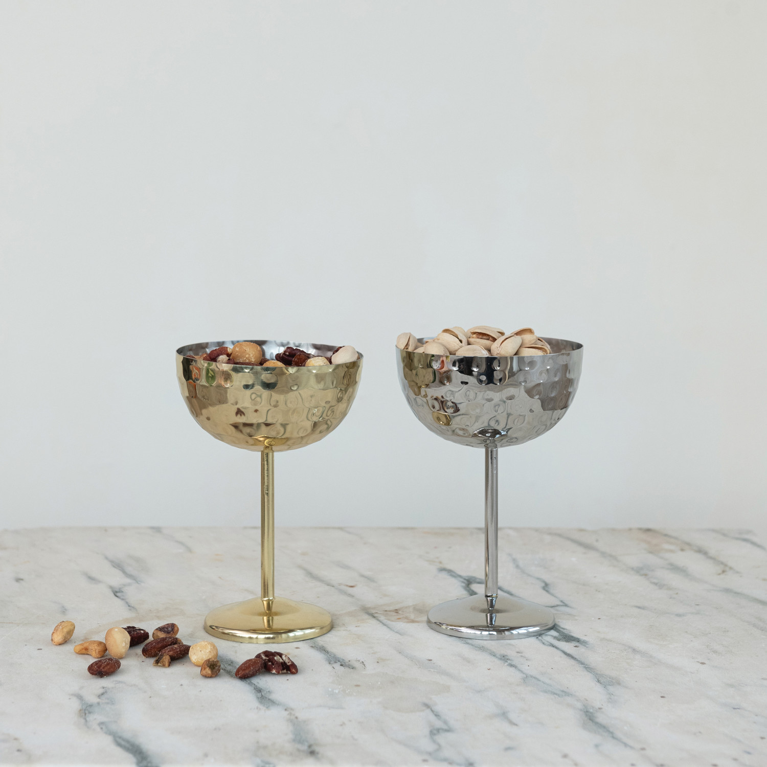 10 oz. Hammered Stainless Steel Coupe Glass, 2 Finishes