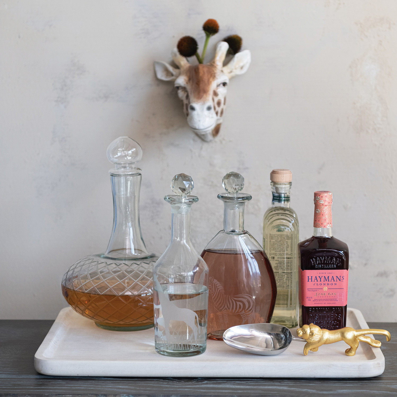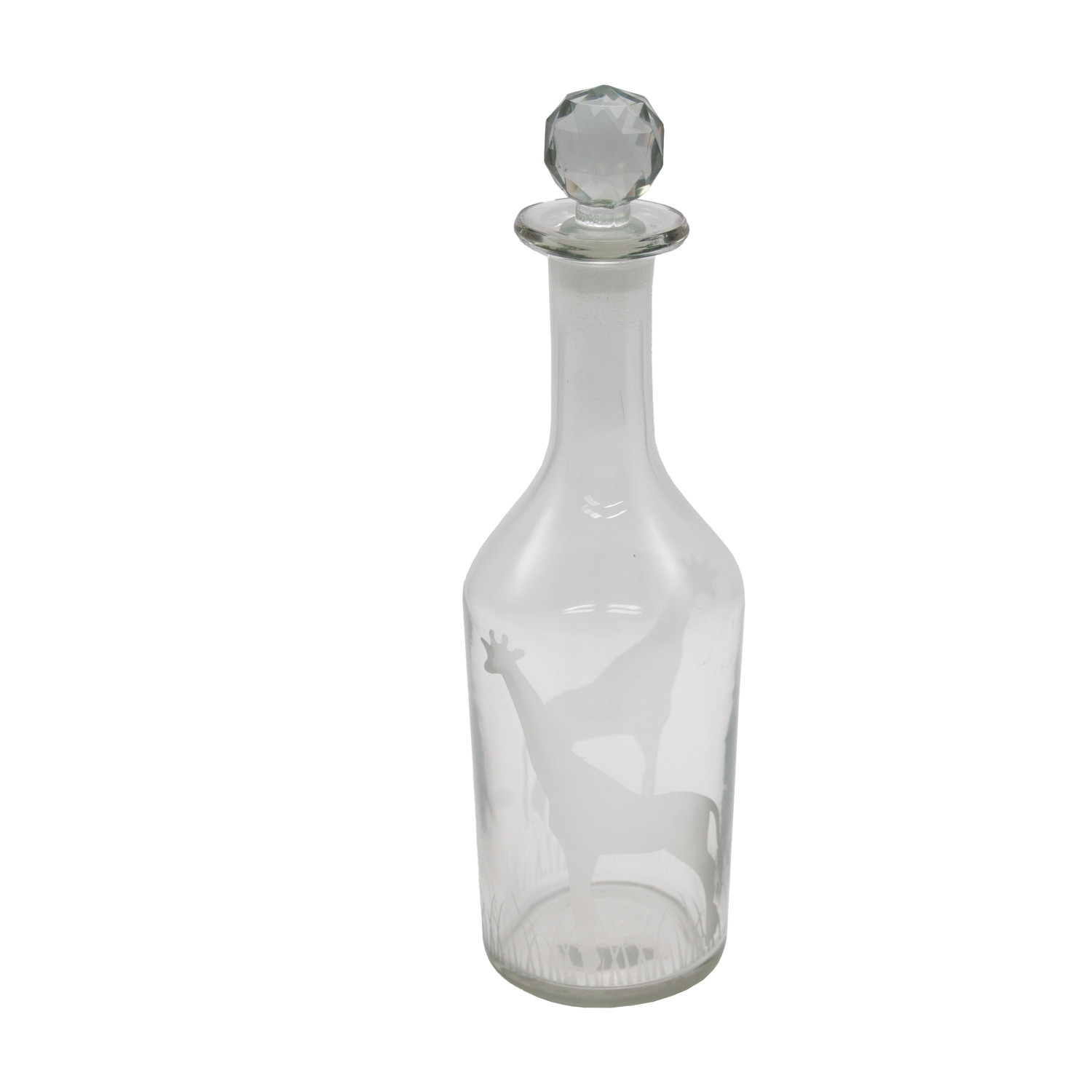 20 oz. Etched Glass Decanter with Giraffes & Glass Stopper