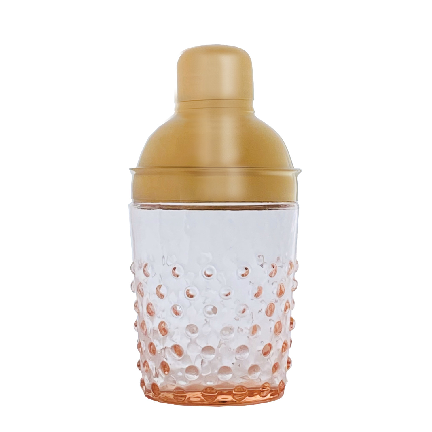 Catalog Name: 3-3/4" Round x 7-1/2"H 14 oz. Stainless Steel & Hand-Blown Glass Hobnail Cocktail Shaker, Gold Finish & Pink