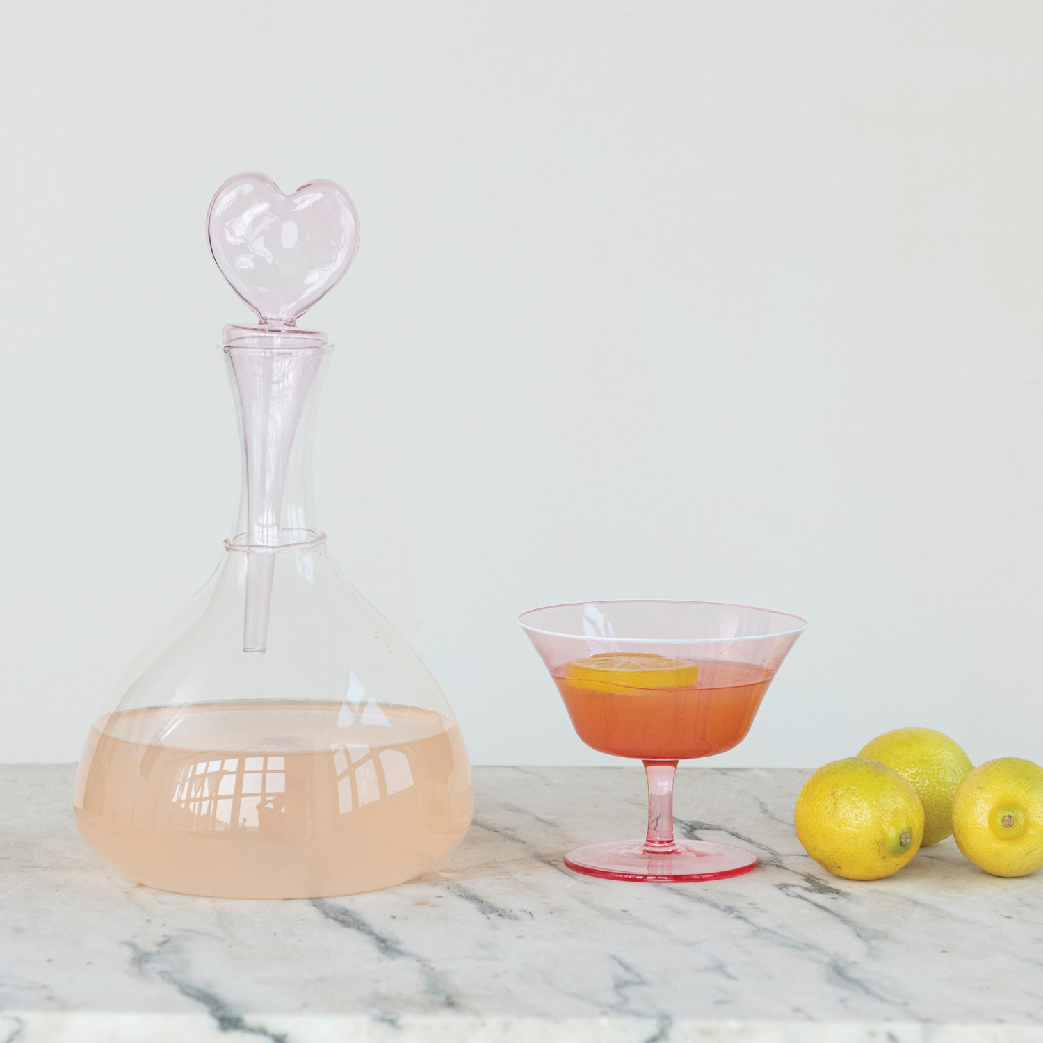 1-1/2 Quart Glass Decanter with Hand-Blown Heart Shaped Stopper