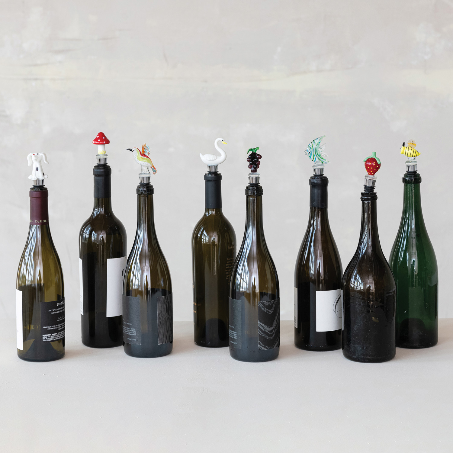Zinc Alloy Bottle Stopper with Hand-Blown Glass Figure, 8 Styles